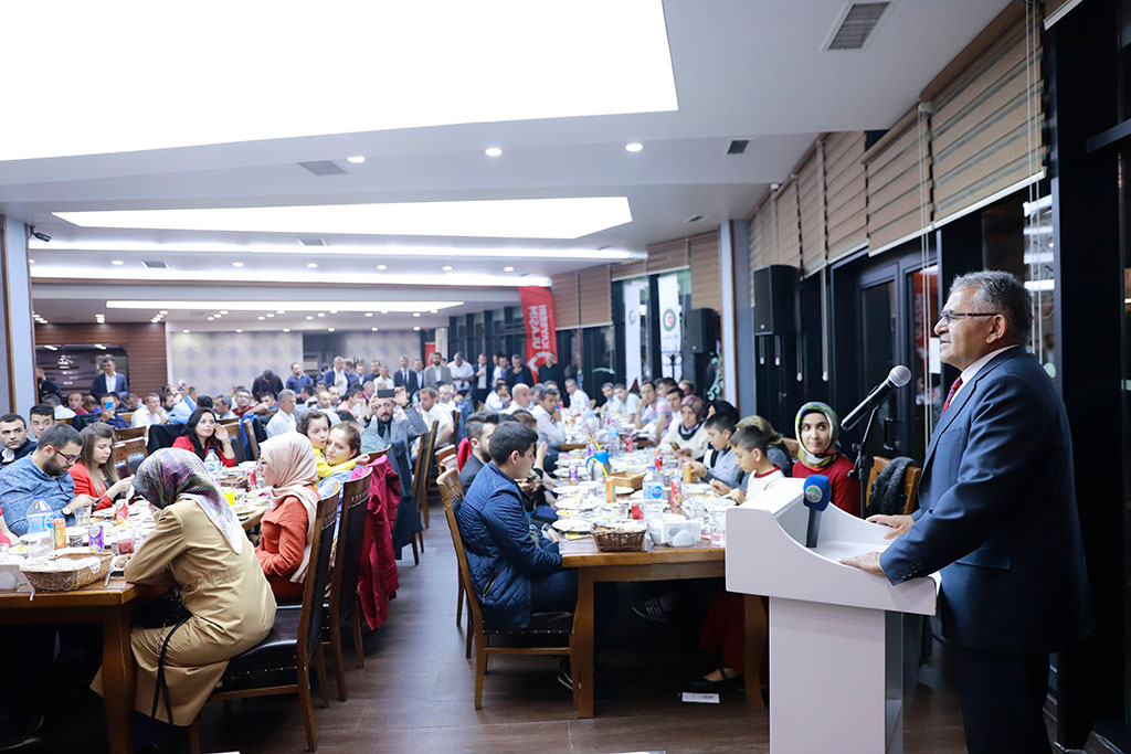 Büyükşehir Belediye Başkanı Dr. Memduh Büyükkılıç, Kayseri Ulaşım A.Ş. çalışanları ile iftarda bir araya geldi. Başkan Büyükkılıç, toplu taşımayla her gün Kayseri’nin yüzde 25’ine ulaşım hizmeti verildiğini söyledi. Kayseri Ulaşım A.Ş. personeline Anadolu Harikalar Diyarı’nda verilen iftara Büyükşehir Belediye Başkanı Dr. Memduh Büyükkılıç’ın yanı sıra Öz Taşıma İş Sendikası Genel Başkanı Mustafa Toruntay, Büyükşehir Belediyesi bürokratları ve Ulaşım A.Ş. çalışanları katıldı. İftarda yaptığı konuşmada Kayseri’de her gün 350 bin kişiye ulaşım hizmeti verildiğini dile getiren Başkan Memduh Büyükkılıç, “Kayseri’nin yüzde 25’i ile her gün muhatap oluyorsunuz. Çevremizdeki illerin nüfusundan fazlasına hizmet veriyorsunuz. Böylesine önemli bir hizmeti verdiğiniz için teşekkür ediyorum. Kayserimizin belediyeciliği dillere destan olduysa ve kamuoyunda takdir topluyorsa, sizlerin vermiş olduğu hizmet sayesindedir. İyi ki varsınız” dedi. Konuşmasında saygılı ve güler yüzle verilen hizmetin önemini de vurgulayan Başkan Memduh Büyükkılıç, “İnancımız ‘İnsanların hayırlısı, onların hizmetkarı olanıdır’ der. Hükmedeni, tepeden bakanı değil. İnşallah bizler ve sizler hep birlikte en güzel şekilde hizmet edeceğiz. İnsanlarımıza güler yüzle hizmet ediyorsanız kulun duasını Allah’ın da rızasını kazanırsınız” diye konuştu.