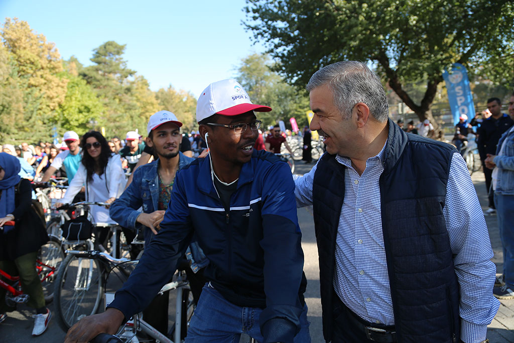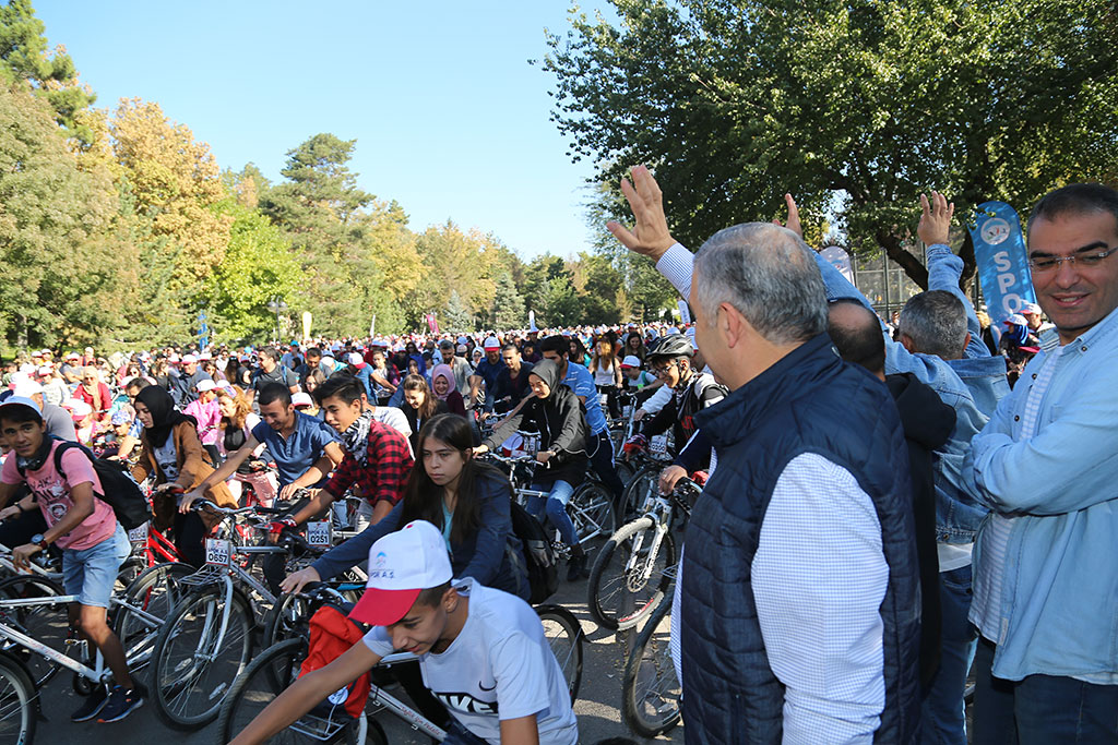 Büyükşehir Belediyesi Spor A.Ş. her yaş grubuna uygun sportif faaliyetleri başarıyla gerçekleştirirken yaptığı sosyal sorumluluk projeleriyle de dikkat çekiyor. Spor A.Ş. bu kez “Her Pedal Bir Kitap” adı altındaki etkinliği ile köy okullarına gönderilmek üzere kitap topladı. Başkan Çelik, etkinliğe bir koli kitapla katılarak destek verdi. Kitle sporlarını sosyal sorumlulukla birleştiren Büyükşehir Belediyesi Gültepe Parkı’nda “Her Pedal Bir Kitap” etkinliği gerçekleştirdi. Etkinliğe yaklaşık 2 bin 500 kişi katıldı. Katılımcılar köy okulları için kitap getirerek hem son derece güzel bir etkinliğe katıldılar hem de anlamlı bir kampanyaya destek verdiler. Büyükşehir Belediye Başkanı Mustafa Çelik de “Her Pedal Bir Kitap” etkinliğine bir koli kitapla destek verdi. Burada yaptığı konuşmada tüm katılımcılara teşekkür eden Başkan Çelik, Spor A.Ş.’nin bir yıl içinde gerçekleştirdiği etkinliklere yaklaşık 500 bin kişinin katıldığını söyledi. Tüm bu güzel etkinliklerin halkın katılımıyla anlam kazandığını ifade eden Başkan Çelik, “Etkinliklerimize sosyal bir tama da yüklüyoruz. Daha önce yaşlılarımızın katılımıyla etkinlik yaptık. Düzenlediğimiz yürüyüşte kan bağışı gerçekleştirdik. Otizmli çocuklarla Sevgi Evleri’ndeki çocukların katılımıyla doğa kampları gerçekleştirdik. Tüm bu etkinlikler sosyal bağımızın güçlenmesine de katkıda bulunuyor” dedi. Başkan Mustafa Çelik, etkinliğe yaklaşık 2 bin 500 kişinin katıldığını ifade ederek tüm katılımcılara destekleri için teşekkür etti. Başkan Çelik, etkinliğe katılanlarla öz çekim de yaptı.