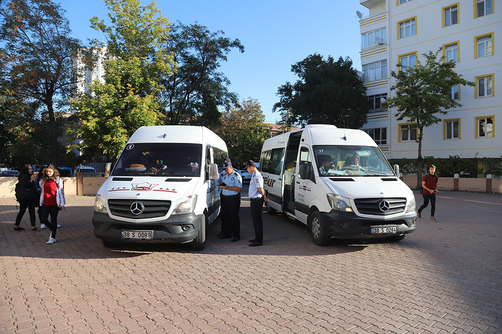 Kayseri Büyükşehir Belediyesi, çocuklarımızın okullarına güvenle gidebilmeleri ve huzurlu bir şekilde evlerine dönebilmeleri için aralıksız denetim yapıyor. Zabıta Daire Başkanlığı personeli tarafından yapılan denetimler gün boyunca devam ediyor. Kayseri Büyükşehir Belediyesi Zabıta Daire Başkanlığı, Trafik Zabıta Ekipleri tarafından, 2019-2020 eğitim öğretim yılının başlaması ile birlikte, şehrimizde kayıtlı bulunan 812 okul servisi aracına yönelik denetimler başlatıldı. Öğrencilerin güvenli bir şekilde ulaşımlarının sağlanması amacı ile yapılan denetimlerde; Okul Servis Araçları Özel İzin Belgesi, Araç Teknik Uygunluk Belgesi, rehber personel, özel izin belgesinde kayıtlı bulunan şoför dışında sürücü çalıştırılıp çalıştırılmadığı, koltuk sayısından fazla öğrenci alınıp alınmadığı ve servis araçları yönetmeliğinde bulunan kurallara uyulup uyulmadığı gibi konularda denetimler yapıldı. Denetimlerde ayrıca araçların temiz ve bakımlı olması yönünde servis sahipleri uyarılarak, kurallara uymayanlar hakkında cezai işlem gerçekleştirildi. Büyükşehir Belediyesi zabıta ekipleri tarafından okul servis araçlarına yönelik yapılan denetimler aralıksız olarak devam edecek.