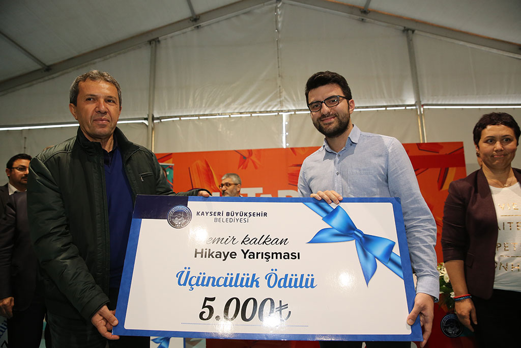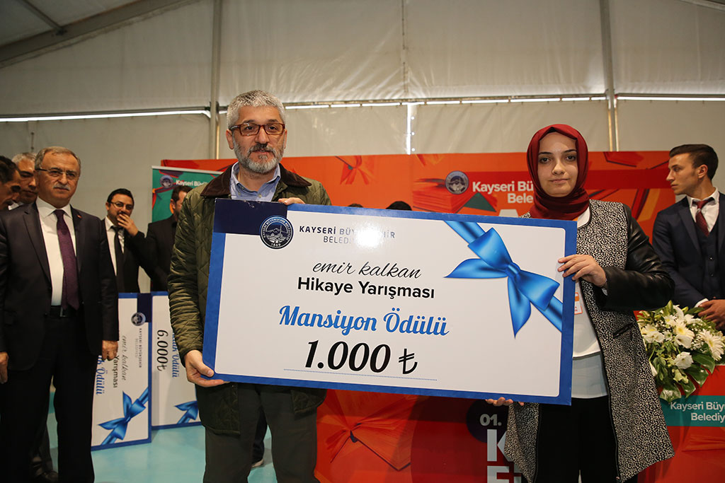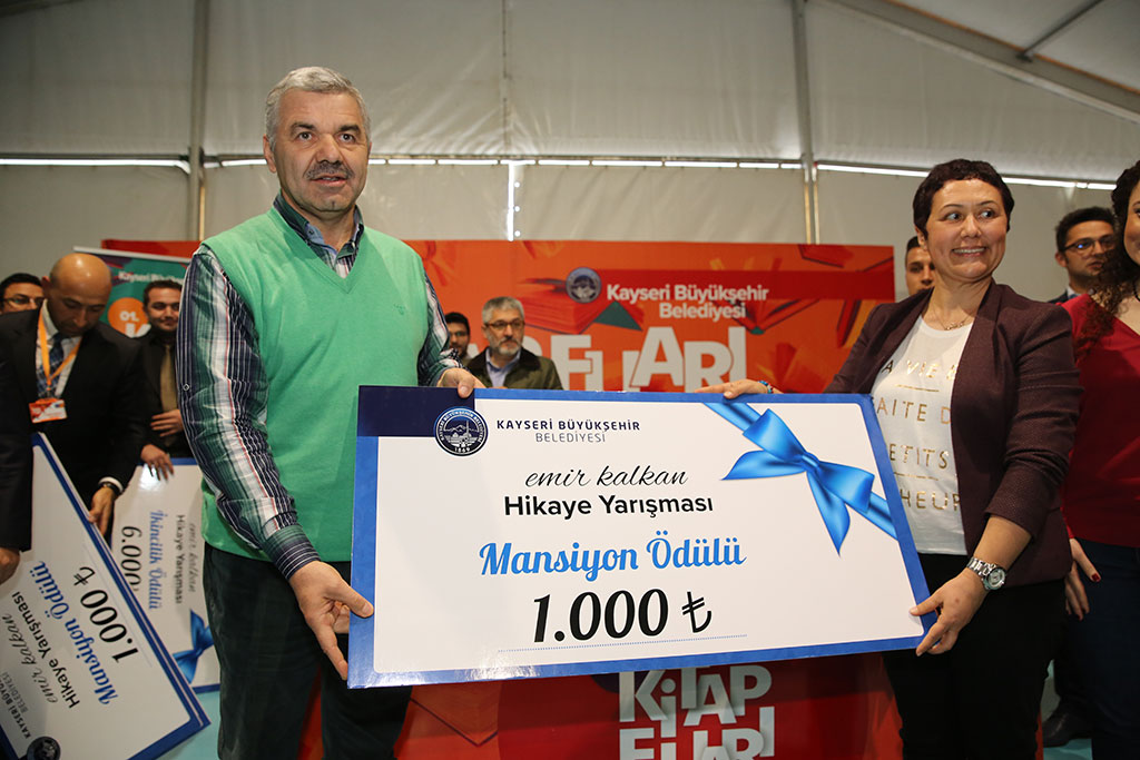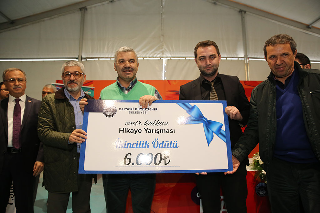 Büyükşehir Belediyesi tarafından Kayseri’nin yetiştirdiği en önemli yazarlardan Merhum Emir Kalkan anısına düzenlenen Hikaye Yarışması’nın ödülleri Kayseri Kitap Fuarı’nda verildi. Ödül törenine Büyükşehir Belediye Başkanı Mustafa Çelik ile birlikte Fuara katılan 15 Temmuz Darbe Komisyonu Başkanı ve AK Parti Burdur Milletvekili Reşat Petek de katıldı. Büyükşehir Belediyesi tarafından Kayseri’nin yetiştirdiği en önemli yazarlardan Merhum Emir Kalkan anısına düzenlenen Hikaye Yarışmasında birinciliği “Rüyaların Peşinde” adlı hikayesiyle Ergün Doğan elde etmiş, “Sirayet” isimli hikayesi ile Caner Çaylak ikinci, “Topal” isimli hikayesiyle Recep Çelik üçüncü olmuştu. Mansiyon ödüllerini ise Sümerra Öztürk Şahin, Ayşe Ünüvar ve Hatice Tarkan Doğanay kazanmıştı. Yarışmanın ödülleri Kayseri Kitap Fuarı’nda düzenlenen törenle verildi. Ödül törenine Büyükşehir Belediye Başkanı Mustafa Çelik’in yanı sıra 15 Temmuz Darbe Komisyonu Başkanı ve AK Parti Burdur Milletvekili Reşat Petek ile Kitap Fuarı’na katılan bazı yazarlar da katıldı. Yarışmanın birincisine 7 bin 500 TL, ikinciye 6 bin TL, üçüncüye 5 bin TL, mansiyona layık görülenlere ise 1000’er TL para ödül verildi.