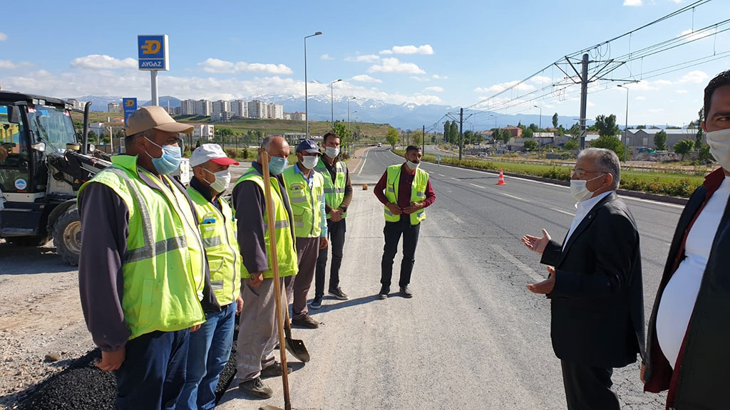 Kayseri Büyükşehir Belediyesi Ramazan Bayramı ve sokağa çıkma kısıtlamasına rağmen hizmet ve yatırımlarını sürdürüyor. Büyükşehir Belediye Başkanı Dr. Memduh Büyükkılıç, Gesi Kavşağı’nda yapılan çalışmaları takip etti ve Kayserililere seslendi. Büyükşehir Belediyesi, sokağa çıkma kısıtlamasının uygulandığı günlerde şehrin trafik yoğun bölgelerinde çalışmaya devam ediyor. Ramazan Bayramına rağmen Gesi Kavşağı’nda yapılan çalışmaları Büyükşehir Belediye Başkanı Dr. Memduh Büyükkılıç da takip etti ve çalışanların bayramını kutladı. Gesi Kavşağı’nda yapılan çalışmaların dört günlük sokağa çıkma kısıtlaması süresi içinde tamamlanacağını ve trafik akışının yeni düzenlemeyle hızlanacağını ifade eden Başkan Memduh Büyükkılıç, “Hemşehrilerimizin Ramazan Bayramını kutluyorum. Büyükşehir Belediyemizin çalışanları gece demeden gündüz demeden hemşehrilerimize daha konforlu hizmet vermek için çalışıyorlar. Ekonomik ve zaman kaybı oluşturan Gesi kavşağımızda yeni bir düzenleme yapıyoruz. Bu düzenleme ile Gesi tarafına giden araçlar kavşakta beklemeyecekler. Çalışan kardeşlerimizin bayramını kutluyor kendilerine teşekkür ediyorum” dedi. Başkan Büyükkılıç, Kayserililere de seslenerek evde kalmalarını istedi ve gerekli hizmetlerin Büyükşehir Belediyesi tarafından yapıldığını belirtti.