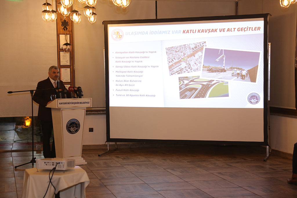 Büyükşehir Belediye Başkanı Mustafa Çelik, bir basın toplantısı yaparak Büyükşehir Belediye Başkanlığı dönemindeki üç yıl da yaptığı icraatları anlattı. Belediyecilik tarihinin en yoğun yıllarını yaşadıklarını ifade eden Başkan Mustafa Çelik, hizmet ve yatırımlarla dolu üç yılı geride bıraktıklarını belirtti. Büyükşehir Belediye Başkanı Mustafa Çelik, Talas-Erguvan Tesisleri’nde yaptığı basın toplantısında sözlerine ülkemizin Afrin harekatına değinerek başladı. Ordumuza Afrin harekatında muzafferiyetler dileyen Başkan Çelik, şehitlerimize rahmet, gazilerimize şifa temennisinde bulundu. Büyükşehir Belediye Başkanlığı’nı 15 Şubat 2015 yılında devraldığını ve yatırımlarla dolu üç yıl geçirdiklerini ifade eden Başkan Çelik, “Bu üç yıl içinde meydana gelen 15 Temmuz darbe girişimi, terörle mücadele, seçimler gibi belediye çalışmalarını olumsuz etkileyen unsurlara rağmen bir taraftan rutin belediyecilik hizmetlerini yaparken bir taraftan da vizyon projeleri hayata geçirdik. Başka belediyelerin 5-10 yılda yapamayacakları işleri üç yılda yaptık” dedi. Devlette devamlılığın esas olduğunu ve ilk etapta hazır olan projeleri tamamladıklarını dile getiren Başkan Mustafa Çelik, bu arada anketler, kamuoyu araştırmaları, yuvarlak masa toplantıları, ilçelerde yapılan toplantılar, muhtarlarla ve sivil toplum kuruluşlarıyla toplantılar, kurum içi ortak akıl toplantıları ve vatandaşlarla yapılan görüşmelerle her kesimi dinleyerek yeni dönemi planladıklarını söyledi. Yeni dönem için “Planlı Gelişim, Estetik Dönüşüm, Fonksiyonel Değişim” şeklinde yeni bir vizyon belirlediklerini ifade eden Büyükşehir Belediye Başkanı Çelik, işe planlamayla başlayarak Ulaşım Master Planı, Kentsel Dönüşüm Master Planı, Tarımsal Gelişme Ana Master Planı ve Üst Ölçekli Ana İmar Planı’nı yenilediklerini kaydetti. “BELEDİYE TARİHİNİN EN YOĞUN YILLARI” Geleceğe yön verecek projeler hazırlayarak çalışmalara hız verdiklerini vurgulayan Başkan Mustafa Çelik, üç yılda toplam bedeli 1 milyar 546 milyon TL olan 742 ihale yaptıklarını ve 5 bin 700 noktada çalıştıklarını söyledi. Belediye tarihinin en yoğun yıllarının yaşandığını dile getiren Çelik, 656 kilometre yol, 1310 kilometre sathi kaplama yol yapıldığını, 2 milyon 650 bin metrekare kilitli parke döşendiğini, 42 spor sahası yaptıklarını, 259 tarım makinesi dağıttıklarını, 344 adet çocuk oyun alanı oluşturduklarını, 275 bin metrekare yeşil alan yaptıklarını ve 17 sosyal tesis ile 10 köprülü kavşağın Kayseri’ye kazandırıldığını kaydetti. “ULAŞIMDA İDDİAMIZ VAR” Büyükşehir Belediye Başkanlığı’ndaki üç yılında ulaşıma önem verdiklerini vurgulayan Başkan Mustafa Çelik, tamamlanan ve yapımı devam eden katlı kavşaklar hakkında bilgi vererek sadece katlı kavşakların maliyetinin 100 milyon TL’yi geçtiğini söyledi. Bekir Yıldız Bulvarı, Hulusi Akar Bulvarı, Malatya Yolu-Serkent Bağlantı Yolu, OSB Talas Yolu, Erciyes Üniversitesi Yeni Giriş Yolu, Beydeğirmeni Besi Bölgesi’ne 52 kilometre yol gibi yapılan alternatif yollar hakkında bilgiler veren Başkan Çelik, şehir merkezindeki pek çok yolda da trafik yoğunluğunu azaltmak için genişletme çalışmaları yaptıklarını ve 50 ayrı kavşakta noktasal çözüme giderek trafik akışını hızlandırdıklarını kaydetti. Başkan Çelik, ulaşım alanında ayrıca üç yılda 1 milyon 100 bin ton sıcak asfalt kullanıldığını, şehrin vitrini olan doğu ve batı girişinin yenilendiğini, raylı sistem Anayurt-Erkilet Hattı ile Belsin-Mobilyakent hatlarının projelerinin tamamlanarak ihale aşamasına getirildiğini, 80 adet otobüs, 30 adet raylı sistem aracı alındığını, ilçelere taşımacılık yapan 164 aracın yenilendiğini, mini terminal projesinin de tamamlanmak üzere olduğunu belirtti. KASKİ’DEN REKOR ÜSTÜNE REKOR Basın toplantısında KASKİ yatırımlarını da değerlendiren Başkan Mustafa Çelik, “Türkiye’de altyapıdaki seviyemize ulaşan ve yanımıza yaklaşan hiçbir belediye yok. KASKİ üç yılda 655 milyon TL’lik yatırım yaptı. İlçelerin altyapısı yenilendi. İçme suyunda yüzde yüze ulaşıldı. Kanal ve arıtmada yüzde 90’lara ulaştık. Hiçbir şehir bu oranların yanından geçemez” dedi. Gelecek için dönüşümü başlattıklarını ifade ederek Sahabiye Kentsel Dönüşüm Projesi’nin son durumu hakkında açıklamalar yapan Başkan Çelik, Türkiye’nin övüneceği bir projenin devam ettiğini söyledi. Ekonomiyi büyütecek projeleri de hayata geçirdiklerini vurgulayan Çelik, Kayseri’ye her yıl 800 milyon TL girdi sağlaması planlanan Beydeğirmeni Besi Bölgesi’ni anlattı. Yeşil alanda yaptıkları yatırımlarla kişi başına düşen yeşil alan miktarını 15 metrekareye çıkardıklarını ifade eden Başkan Mustafa Çelik, ilçelere yapılan yatırımlarla ilgili de detaylı bilgi verdi. İlçelere sosyal ve kültürel destek sağlayan kadın ve gençlik merkezleri ile ilçelere ekonomik destek sağlayan projeler hakkında bilgi veren Başkan Çelik, şehrin farklı yerlerine yapılmakta olan beş yıldızlı sosyal yaşam merkezlerinden de bahsetti. Altı okulla eğitime verdikleri destek, Emniyet Müdürlüğü ile Orman Bölge Müdürlüğü’ne yaptıkları hizmet binaları, Güreş Eğitim Merkezi gibi yatırımlarla ilgili de açıklamalarda bulunan Başkan Çelik, 6 ay gibi kısa bir sürede yaparak hizmete sundukları Kent Ekmek yatırımı üzerinde de durdu. Başkan Çelik, günlük 160 bin kapasiteli Kent Ekmek’in en kaliteli ekmeği üreterek Kayseri’deki fiyatı dengelediğini söyledi. “KÜLTÜR, SANAT, SPOR VE EĞİTİMDE HIZ KESMİYORUZ” Büyükşehir Belediye Başkanı Çelik, kültür sanat a