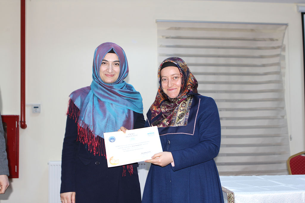 Kayseri Büyükşehir Belediyesi bünyesindeki KAYMEK’in önemli birimlerinden olan Huzur Çınarı Aile Danışmanlık ve Rehberlik Merkezi, aile yapısının korunması ve daha sağlıklı olmasına yönelik çalışmalarını sürdürüyor. Huzur Çınarı Aile Danışmanlık ve Rehberlik Merkezi'nin projelendirdiği Anne Akademisi Develi de gerçekleştirilen programla sona erdi. “Her Anne Bir Okuldur” sloganı ile gerçekleştirilen ve üç gün süren Anne Akademisi’nde eğitimlerin ardından katılımcılara sertifikaları verildi. Develi’deki eğitim programına katılan Uzman Sosyolog ve Aile Danışmanı Gökçe Çiçek İlhan çocuklarda davranış bozuklukları, ergenlik problemleri, çocuklarda mahremiyet eğitimi ve günümüzün kanayan yaralarından olan istismar konularına değinerek ebeveynlere düşen görevlere ilişkin bilgiler verdi. Programda daha sonra Develi Belediye Başkan Yardımcısı Mehmet Güçlü, Huzur Çınarı Müdürü Serkan Kaya ve KAYMEK Sanat ve Mesleki Eğitim Kursları Müdüresi Mürşide Gonca Aslan, katılımcı annelere sertifikalarını takdim etti.