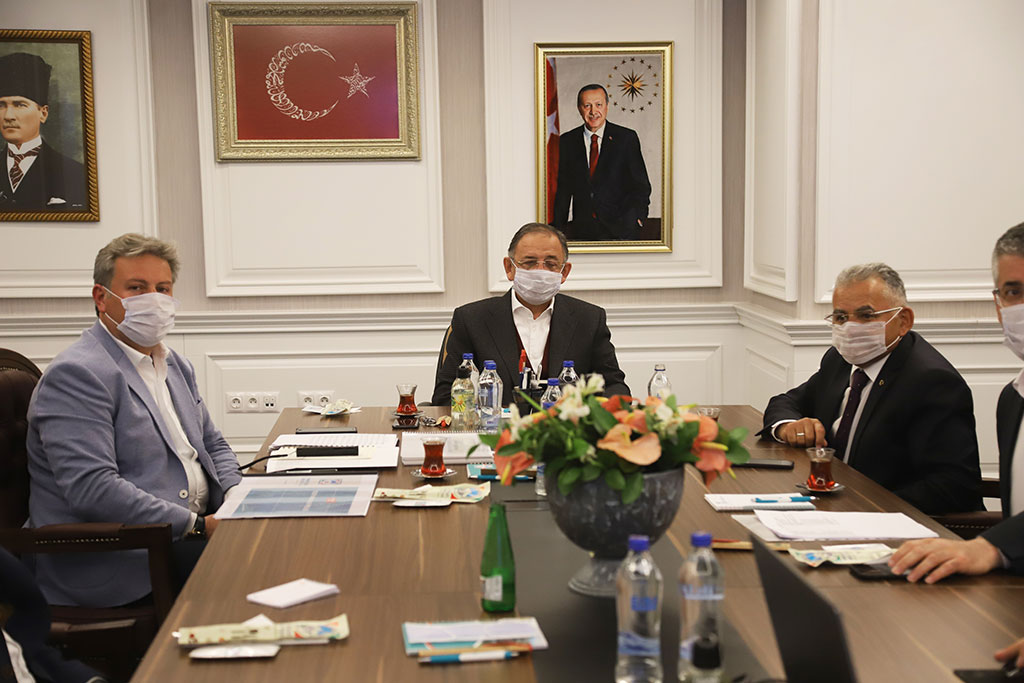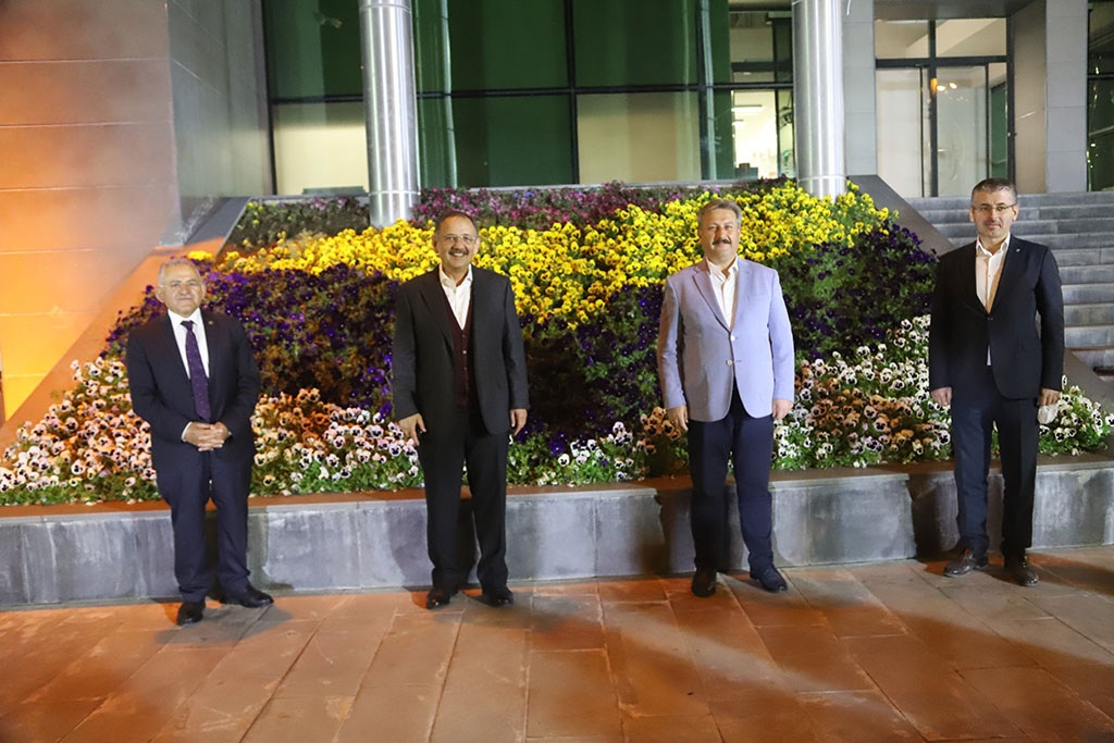 Büyükşehir Belediye Başkanı Dr. Memduh Büyükkılıç, AK Parti Genel Başkan Yardımcısı Mehmet Özhaseki’nin yatırımlarla ilgili yaptığı toplantıya katıldı. AK Parti Genel Başkan Yardımcısı Özhaseki, Kayseri’de belediyeler arasındaki uyuma dikkat çekerek bu muhabbetin Türkiye’nin bir başka şehrinde görülemeyeceğini söyledi ve Büyükşehir Belediyesi'nin bir ağabey konumunda tüm projelere sahip çıktığını kaydetti. İlçe belediyeleri tarafından yapılacak olan yatırımların ayrı ayrı değerlendirildiği iftardan sahura kadar devam eden yatırım toplantılarının ilki Melikgazi Belediyesi’nde yapıldı. Toplantıya AK Parti Genel Başkan Yardımcısı Mehmet Özhaseki ve Büyükşehir Belediye Başkanı Dr. Memduh Büyükkılıç’ın yanı sıra AK Parti İl Başkanı Şaban Çopuroğlu, Melikgazi Belediye Başkanı Mustafa Palancıoğlu ve Melikgazi Belediyesi bürokratları katıldı. Toplantı sonrası bir açıklama yapan ve bu toplantıları Kocasinan, Talas ve Büyükşehir için de yapacaklarını ifade eden AK Parti Genel Başkan Yardımcısı Mehmet Özhaseki, “İftar sonrası başlattığımız toplantıda belediyelerimizin bu sene içinde yapacağı projeler ile 5 yıl içinde yapacağı projeleri uzun uzuz ele alıyoruz. Bu projelerin kaynak temini, bakanlıklardaki problemler varsa nasıl aşılacağı gibi konularda istişarelerde bulunuyoruz. Bir taraftan Büyükşehir Belediyemizin devasa projeleri, bir taraftan da ilçe belediyelerimizin yapacağı projeler var. Bu projeleri gerçekleştirmemiz lazım. Bunları gerçekleştirecek siyasi irade başta Cumhurbaşkanımız olmak üzere hepimizde var. Buradaki bu muhabbeti Türkiye’nin başka yerinde göremezsiniz. Siyasi kurum olarak AK Parti İl Başkanlığımız her zaman yanımızda. Ben genel merkez temsilcisiyim. Büyükşehirimiz hepsinin ağabeyi konumunda ve Kayseri’deki tüm projelere kol kanat gererek üzerine düşeni yapıyor. Bugün Melikgazi Belediyesi’ndeki projeleri ele aldık. Bazıları için ilgili bakanlarımızı aramamız lazımdı. Bu akşam birkaç bakan ve bakan yardımcımızı aradık ki bizim işlerimize yardımcı olun diye ve hepsinden olumlu yanıt geldi. Bereketli akşamlar geçiriyoruz. İyi niyetle çalışıyoruz, Allah da bereketini veriyor” diye konuştu.