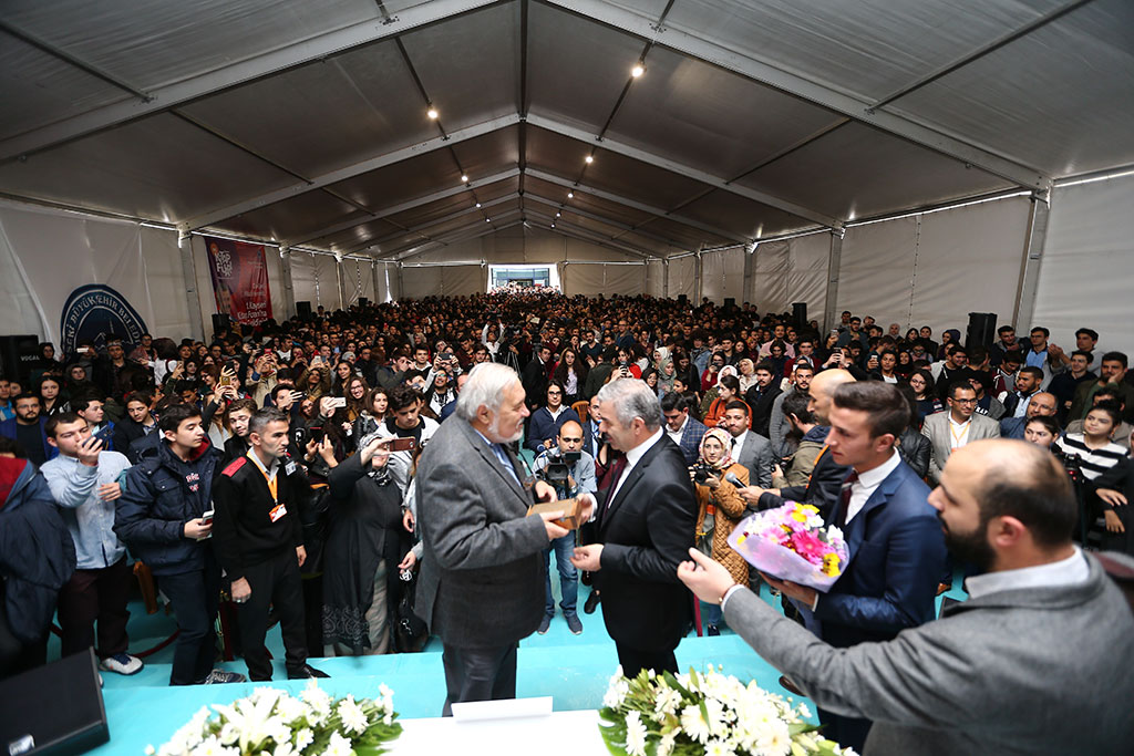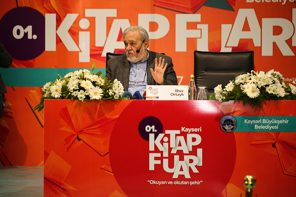 Büyükşehir Belediyesi tarafından Kayseri Dünya Ticaret Merkezi’nde yapılan Kayseri Kitap Fuarı’na Ünlü Tarihçi İlber Ortaylı da katıldı. Ortaylı, böyle bir fuara katılmış olmaktan mutluluk duyduğunu belirtti. Kayseri Kitap Fuarı adeta ünlüler geçidine sahne oluyor. Nuri Pakdil, Rasim Özdenören, Mete Yarar, Hanefi Avcı, İclal Aydın, Reşat Petek, Engin Noyan ve daha pek çok ünlü ismin ardından Tarihçi İlber Ortaylı da Kitap Fuarı’na katıldı. İlber Ortaylı, Kitap Fuarı’nda vereceği konferansa Büyükşehir Belediye Başkanı Mustafa Çelik ile birlikte geldi. Konferansı Başkan Çelik de izledi. Büyük ilgi gösterilen konferansta tarih bilincinin oluşması için kaynaklara gidilmesi gereğini vurgulayan Ortaylı, bunun için de Arapça ve Osmanlıcanın bilinmesi gerektiğini belirtti. Üniversite özellikle sosyal bilimler alanında bitirmiş kişilerin Arap harflerini öğrenmeleri gerektiğini dile getiren Ortaylı, “Bunu öğrendiğimiz takdirde kaynaklara inebiliriz. Bu harfleri okumadan Türk münevverinin üstün bir kapasiteye çıkması, milli vasıfları kazanması ve beynelmilel bir kişilik olarak ortaya çıkması mümkün değildir” dedi. Konferansın sonunda Büyükşehir Belediye Başkanı Mustafa Çelik, İlber Ortaylı'ya Kitap Fuarı için özel bastırılan mührü hediye etti. “FUARA KATILMAKTAN MEMNUNİYET DUYDUM” Tarihçi İlber Ortaylı, konferansın ardından yapmış olduğu açıklamada Büyükşehir Belediyesi Kayseri Kitap Fuarı ile ilgili beğenilerini dile getirdi. Fuara katılmaktan memnuniyet duyduğunu ifade eden Ortaylı, “Fuara bilhassa üniversite gençliği ve liselilerin alakası dikkat çekici. Gelecek yıllarda da bu fuarın büyüyerek devam etmesini diliyorum” dedi.