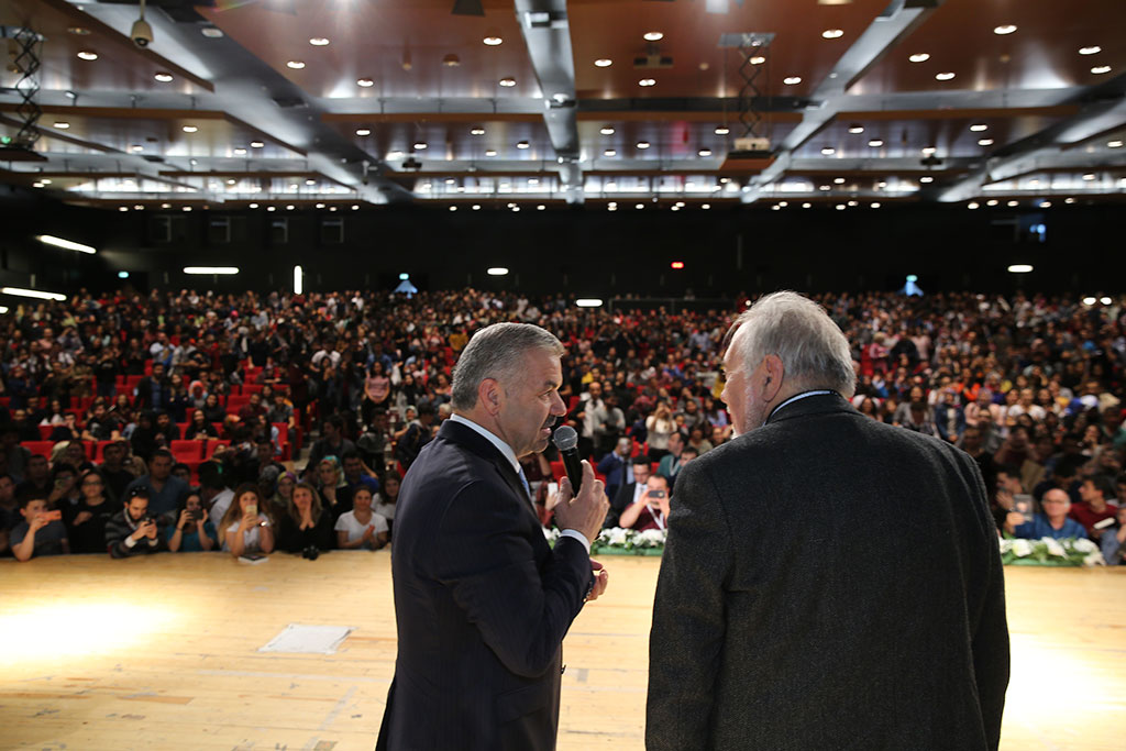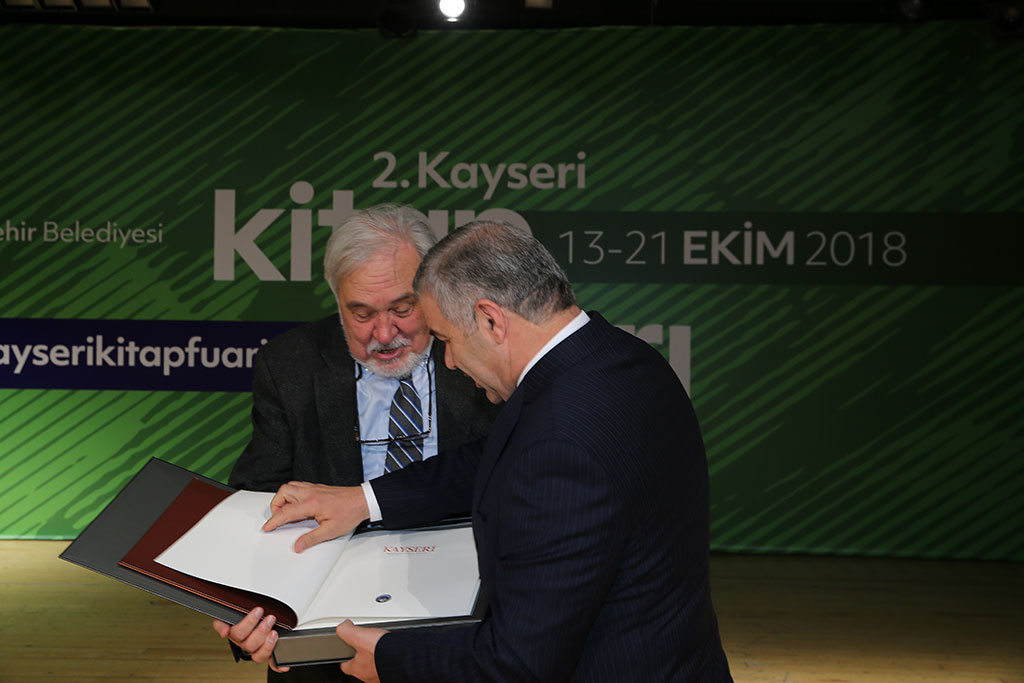 Büyükşehir Belediyesi’nin düzenlediği 2. Kayseri Kitap Fuarı’na Ünlü Tarihçi İlber Ortaylı da katıldı. Ortaylı, fuar kapsamında verdiği konferans sonrası Büyükşehir Belediye Başkanı Mustafa Çelik ile Talas-Erguvan Tesisleri’ne geçti. İlber Ortaylı; fuarı, özellikle gençlerin gösterdiği ilgiyi, Büyükşehir Belediyesi’nin yayınladığı eserleri ve Kayseri’yi çok sevdiğini belirtti. 2. Kayseri Kitap Fuarı’na katılan Ünlü Tarihçi İlber Ortaylı’nın konferansına katılımın çok yoğun olacağı öngörüsüyle, “Türkiye’nin yakın tarihi” konulu konferans Kadir Has Kültür ve Sanat Merkezi’nde yapıldı. Özellikle gençlerin büyük ilgi gösterdiği konferansta salon tıklım tıklım dolduruldu. Konferansı Büyükşehir Belediye Başkanı Mustafa Çelik de izledi. Dünya ve Türkiye’den tarihi değerlendirmeler yapan İlber Ortaylı konferansın sonunda “Türkiye’de yaşayan insanlar başka bir Türkiye olmayacağını anlamalılar” dedi ve gerginliklerin yaşanmaması gereğini dile getirdi. “KAYSERİ ÖNEMLİ BİR MERKEZ” Konferans sonrası Büyükşehir Belediye Başkanı Mustafa Çelik, İlber Ortaylı’ya Büyükşehir’in bastırdığı Medeniyetler Şehri Kayseri kitabını hediye etti. Kayseri’de tarihi değerleri yansıtan güzel eserler çıktığını ifade eden Ortaylı, “Büyükşehir Belediyesi’nin yayınları var. Kayseri yayınlar bakımından önemli bir merkez. Yeni çıkan ve çok güzel basılan eser için de teşekkür ediyorum. Buraya gelmeme değdi” dedi. Başkan Mustafa Çelik de Kitap Fuarını önemli hale getiren üç unsur bulunduğunu ifade ederek, “Üç unsurun birincisi organizasyon, ikincisi okurlar, üçüncüsü yazarlar. Önemli yazarlarımızın vermiş olduğu bu tür konferanslar yeni kapılar açıyor” diye konuştu. İlber Ortaylı, konferans sonrası büyük ilgi eşliğinde salondan çıktı. Büyükşehir Belediye Başkanı Mustafa Çelik, İlber Ortaylı ile konferansın ardından Talas-Erguvan tesislerine geçti. Tesisleri gezen ve çok beğenen Ortaylı, Kitap Fuarı çok iyi. Kayseri’de okumuş yazmışı bol. Okuma yazma bilmeyeni de Kayserili olduğu için gelir. Bu fuar çok önemli. İnşallah devam eder ve biz de geliriz. Belediyeyi de sevdim. Bu parkı da sevdim. Daha uzun süreli Kayseri’ye gelmem gerekir” dedi. Büyükşehir Belediye Başkanı Mustafa Çelik de Kitap Fuarı’na gösterilen ilginin daha iyisini yapmak için kendilerine şevk verdiğini belirtti.