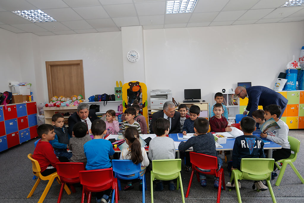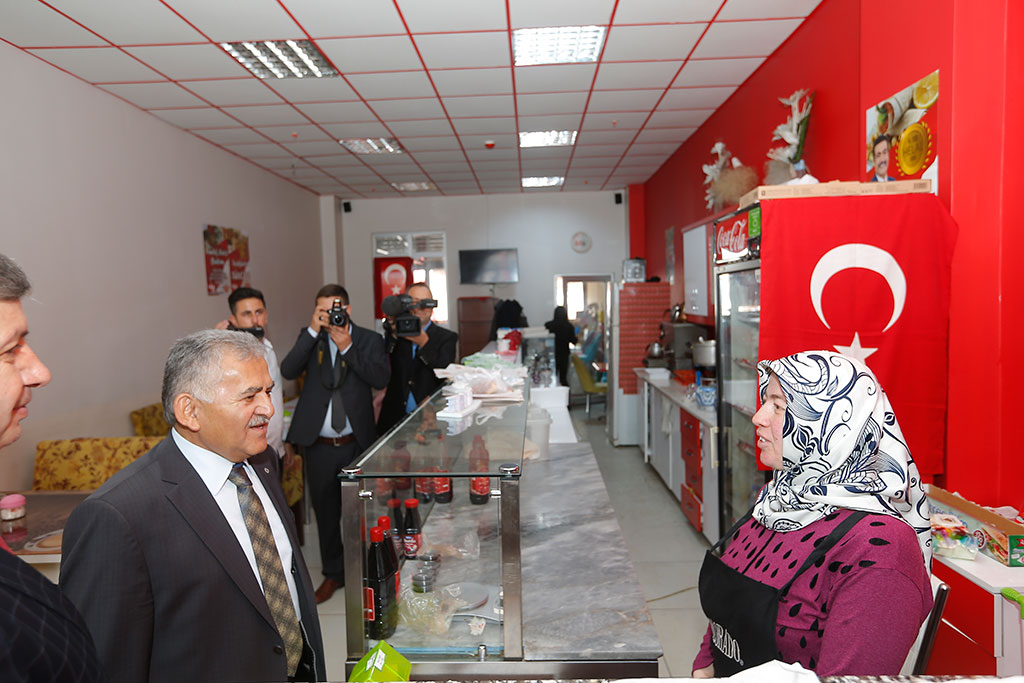Kayseri Büyükşehir Belediye Başkanı Dr. Memduh Büyükkılıç, Bünyan ilçesini ziyaret etti. Bünyan’da bir dizi ziyaret ve incelemelerde bulunan Başkan Büyükkılıç, esnafları da gezerek taleplerini dinledi. Başkan Büyükkılıç, Bünyan ve tüm ilçelerle el ele gönül gönüle vererek çalışacaklarını söyledi. Büyükşehir Belediye Başkanı Memduh Büyükkılıç, Bünyan Belediyesi önünde İlçe Belediye Başkanı Özkan Altun tarafından çiçekle karşılandı. Bünyan Belediyesi’ne girmeden önce bölgedeki esnafları ziyaret eden Başkan Büyükkılıç, büyük bir ilgi ve sevgiyle karşılandı. Aynı ilgiyle karşılık veren Başkan Büyükkılıç, “Sizlerin kardeşi ve evladı olarak sizlere layık olabilirsek ne mutlu bize” ifadelerini kullandı. BÜNYAN’A TEŞEKKÜR ETTİ Büyükşehir Belediye Başkanı Büyükkılıç, esnafları ziyaretinin ardından Bünyan Belediyesi’ne geçti. Belediye girişinde bir süre Bünyan’ın simgelerinden olan küçük bir tezgahta halı dokunmasını izleyen Başkan Büyükkılıç, Bünyan Belediye Başkanı seçilen Özkan Altun’u ziyaret ederek hayırlı olsun dileklerinde bulundu. Bünyan halkına verdikleri destek için teşekkür eden Başkan Büyükkılıç, “Bizlere, Bünyan Belediye Başkanımıza ve Cumhur İttifakına sahip çıktığınız için teşekkür ediyorum. Özkan Başkan ile el ele vermek suretiyle Şehitler Diyarı Bünyan’ımıza yakışanı yapacağımızdan şüpheniz olmasın” dedi. Bünyan Belediye Başkanı Altun da Başkan Büyükkılıç’a nazik ziyaretleri için teşekkür ederek “Bize güç veriyorsunuz. Bünyan halkı, tüm Kayseri halkı gibi sizleri çok seviyor” diye konuştu. Bünyan Belediyesi’nde bir süre vatandaşlarla görüşen ve taleplerini dinleyen Başkan Memduh Büyükkılıç, daha sonra belediyenin birimlerini gezerek personelle selamlaştı. Büyükşehir Belediye Başkanı Dr. Memduh Büyükkılıç, ilçe belediyesini ziyaretinin ardından Bünyan Meydanı’ndaki vatandaşlarla selamlaştı. Başkan Büyükkılıç, bu sırada İlçe Emniyet Müdürü ile de bir süre sohbet etti. Bünyan Belediyesi’nden yürüyerek AK Parti İlçe Teşkilatı’na geçen Başkan Memduh Büyükkılıç, İlçe Başkanı Yıldırak Hakkı Koç ile görüştü. Başkan Büyükkılıç, burada parti yöneticileriyle de bir araya gelerek seçimlerde gösterdikleri gayret ve desteklerinden dolayı teşekkür etti. Başkan Büyükkılıç, “İlçe belediye başkanımızla kol kola vererek sizleri mahcup etmeyeceğiz” dedi. KADIN VE GENÇLİK MERKEZİ’Nİ ZİYARET ETTİ Büyükşehir Belediye Başkanı Memduh Büyükkılıç, AK Parti İlçe Teşkilatının ardından Bünyan esnaflarını ziyaretini sürdürdü. Her girdiği iş yerinde sıcak ve samimi bir şekilde karşılanan Başkan Büyükkılıç, daha sonra Bünyan Kadın ve Gençlik Merkezi’ni ziyaret etti. Başkan Büyükkılıç, ilk olarak kurslara gelen kursiyerlerin çocuklarının bakıldığı kreşi ziyaret ederek çocuklarla yakından ilgilendi. Başkan Büyükkılıç, çocuklara boyama kitabı hediye etti. 8 branşta 250 kursiyere hizmet verilen Kadın ve Gençlik Merkezi’ndeki aralarında halıcılığın da bulunduğu meslek kurslarını ziyaret eden Başkan Büyükkılıç, kursiyerlerle sohbet etti ve ürünleri inceledi. Başkan Büyükkılıç, Kadın ve Gençlik Merkezi’nde öğrenciler için açılan kurslara da girerek gençlerle görüştü. Büyükşehir Belediye Başkanı Dr. Memduh Büyükkılıç, Bünyan ziyaretinde İlçe Belediye Başkanı Özkan Altun ile birlikte Bünyan’ın en güzel yerlerinden Pınarbaşı Mesire Alanı’na da geçti. Mesire alanında incelemelerde bulunan Başkan Büyükkılıç, Bünyan'daki KASKİ'nin tesislerini de gezdi.