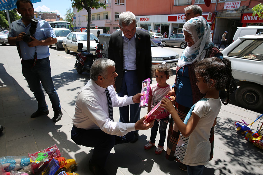 Büyükşehir Belediye Başkanı Mustafa Çelik, Develi’de esnaf ve vatandaşlarla görüştü. İlçe Belediye Başkanı Mehmet Cabbarı’ı da ziyaret eden Başkan Çelik, tüm ilçe belediyeleri ile kol kola çalıştıklarını söyledi. Büyükşehir Belediye Başkanı Mustafa Çelik, Develi Sosyal Yaşam Merkezi’nde yaptığı incelemelerin ardından esnafları ziyaret etti. İlçe meydanında vatandaşlarla selamlaşan Başkan Çelik, daha sonra esnafları ziyaret ederek “Hayırlı İşler” temennisinde bulundu. Başkan Çelik’in esnaf ziyaretine Develi Belediye Başkanı Mehmet Cabbar ile AK Parti İlçe Başkanı Mehmet Durukan da katıldı. Esnaflarla ve alışveriş yapan vatandaşlarla sohbet eden Başkan Çelik, bir oyuncakçıyı ziyareti sırasında iş yeri önünde bulunan çocuklara oyuncak hediye etti. Başkan Çelik, oyuncak tüfek isteyen çocuklara oyuncak da olsa silahla oyun yok diyerek farklı oyuncaklar verdi. Başkan Çelik, bir berberi ziyaretinde ise kısa süre bir çocuğun tıraşını yaptı. Büyükşehir Belediye Başkanı Mustafa Çelik, Develi Belediye Başkanı Mehmet Cabbar’ı da ziyaret etti. Ziyarette ilçede yapılan yatırımlarla ilgili bilgi alan Başkan Çelik, “Develi’ye ne zaman gelsek halkın yoğun ilgisiyle karşılaşıyoruz. Bu ilgi alakanın bir nedeni de belediyemizin yaptığı çalışmalar. İlçe belediyemiz o kadar güzel çalışma yapmış ki Develi’yi batıdaki birçok ilden dahi daha konforlu bir yer haline getirmiş. Develi, caddeleri, yeşil dokusu ve sosyal dokusu ile batıdaki birçok ille yarışır hale gelmiş. Burada zaten Büyükşehir ve ilçe belediyemiz birlikte hizmet ediyoruz. Kol kola vererek bundan sonra da hizmet etmeye devam edeceğiz. Hizmet ettiğimiz hemşehrilerimizin mutluluğunu görünce şevkle çalışmayı sürdürüyoruz” dedi. BÜYÜKŞEHİR, DEVELİ’YE 120 MİLYON TL’LİK YATIRIM YAPTI” Develi Belediye Başkanı Mehmet Cabbar da yapılan yatırımlara en büyük desteği Büyükşehir Belediyesi’nin verdiğini söyledi. Bütünşehir Yasası’nın ardından Büyükşehir Belediyesi’nin Develi’ye yaptığı yatırımın 120 milyon TL’yi bulduğunu dile getiren Cabbar, “Ne zaman bir şey istesek geri döndürmediniz. Biz de Develimizi daha güzel hale getirmek için sizlerin desteği ile çalışıyoruz. Bugüne kadar yaptıklarınız için hemşehrilerim adına teşekkür ediyorum. Bütünşehir Yasası ile Büyükşehir Belediyesi’nce Develi’ye yapılan yatırım 120 milyon TL’yi aştı” diye konuştu.
