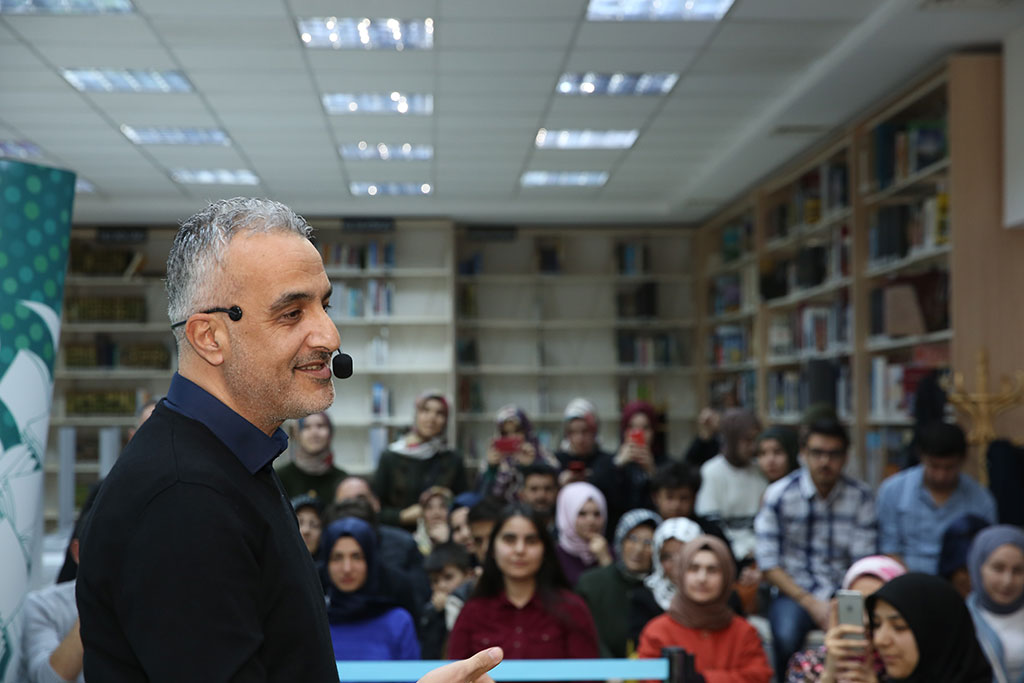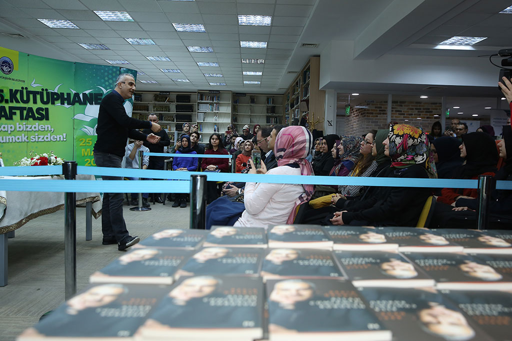 Büyükşehir Belediyesi kültür sanat etkinlikleri çerçevesinde Kütüphaneler Haftası nedeniyle bir söyleşi düzenlendi. Söyleşiye Televizyon Programcısı ve Yazar Bekir Develi katıldı. Büyükşehir Belediyesi’nin şehrimize kazandırdığı 800 kişilik Merkez Kütüphanesi’nde gerçekleştirilen Bekir Develi’nin katıldığı söyleşiye öğrenciler büyük ilgi gösterdi. İzleyicilerle karşılıklı iletişim halinde interaktif ve sürükleyici bir sohbet gerçekleştiren Bekir Develi, bir araya gelmenin ve muhabbet etmenin önemini vurgulayarak “Eskiler insan insanın zehrini alır derler. İnsanın aslı, özü muhabbettir. İnsan bazen kendi bildiğini bir başkasının ağzından duymak ister” ifadelerini kullandı. Kitabın ve okumanın önemini de vurgulayan Bekir Develi, 800 kişilik Merkez Kütüphanesi’nin yeni olduğunu öğrendiğini belirterek, “Kitapla okuyucu buluşmasının kötüsü olmaz. Allah bu yatırıma vesile olanlardan razı olsun” diye konuştu. Bekir Develi söyleşi sonrası katılımcılar için kitabını da imzaladı.