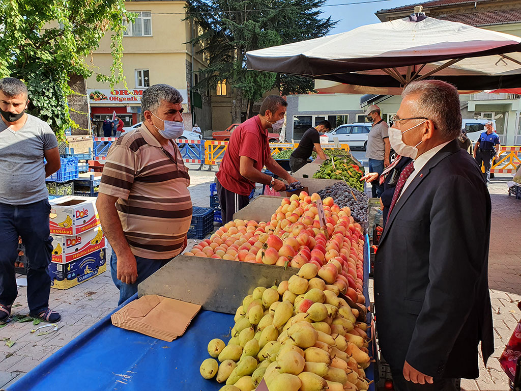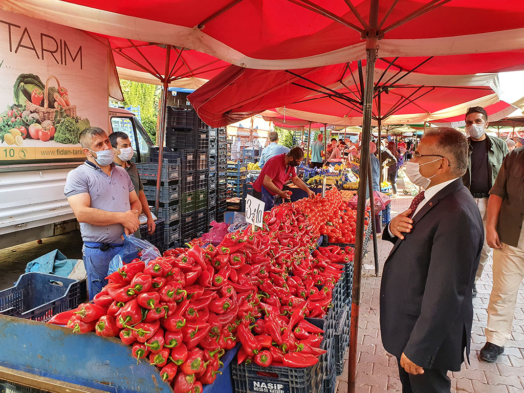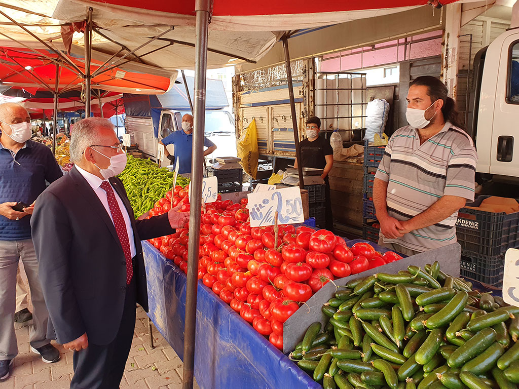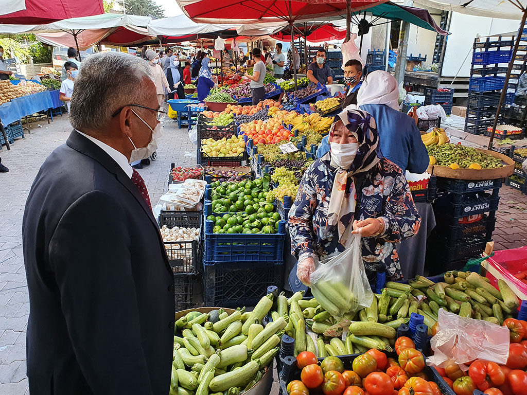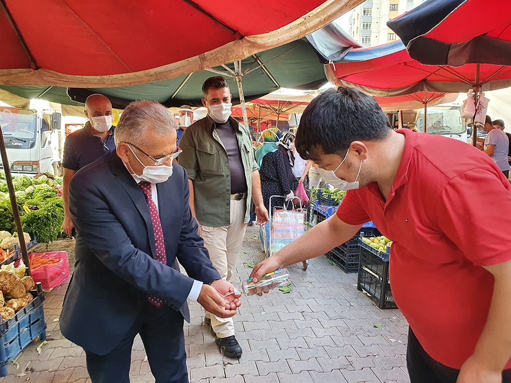 Kayseri Büyükşehir Belediye Başkanı Dr. Memduh Büyükkılıç, bu kez Gültepe Semt Pazarı’nı çat kapı ziyaret ederek, uyarılarda bulundu. Başkan Büyükkılıç “İnsanlarımızın kurallara uymasından keyif alıyoruz. Maske, Mesafe ve Temizlik kuralını asla ihmal etmeyelim” dedi. Semt pazarında esnaf ve vatandaşlara uyarılarda bulunan Başkan Büyükkılıç, “Gültepe Pazar yerini ziyaretimizde hepsinin kurallara uyduğunu gördük ve keyif aldık. Vatandaşlarımız zaten aynı hassasiyeti gösteriyor. Sonuçta hem kendimizi koruyor hem karşımızdakini koruyoruz. Bu kuralları bir dayatma mantığı içinde değil, bu virüs denilen lanetten uzaklaşmak için onunla birlikte yaşamayı bir kültür edinmek için maske, mesafe, temizlik kurallarını unutmamamız gerektiğinin hepimiz farkındayız. Ben her şeyden önce sağduyu ile hareket eden, kurallara uyan, hem şehrini hem kendini, hem karşısındakini koruyan esnaflarımıza teşekkür ederken Cenab-ı Allah onlara helalinden bol rızıklar versin diyorum. Vatandaşlarımıza da İnşallah sağlıklı huzurlu günler temenni ediyorum. İnanın keyifli bir ziyaret yapmış olduk. Önceden de haber etmediğimiz için vatandaşlarımız ‘bazen deniliyor ya yetkililer gelince tedbir alıyorlar diye’ öyle bir şey yok. Ben inanıyorum ki vatandaşımız menfaatine olan bir şeyi hiçbir zaman birisinin demesiyle değil kendi menfaatine ve karşıdakini korumak için yapar. “ ifadelerini kullandı.