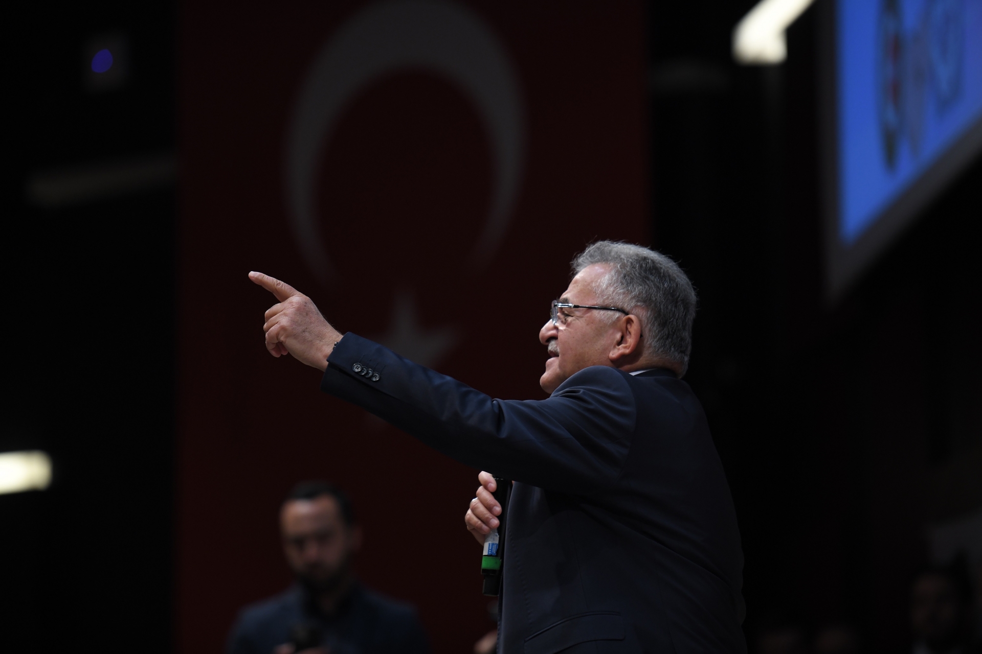 ALKIŞLARLA VE ‘KAYSERİ SENİNLE GURUR DUYUYOR’ SLOGANLARI İLE KÜRSÜYE ÇIKTI