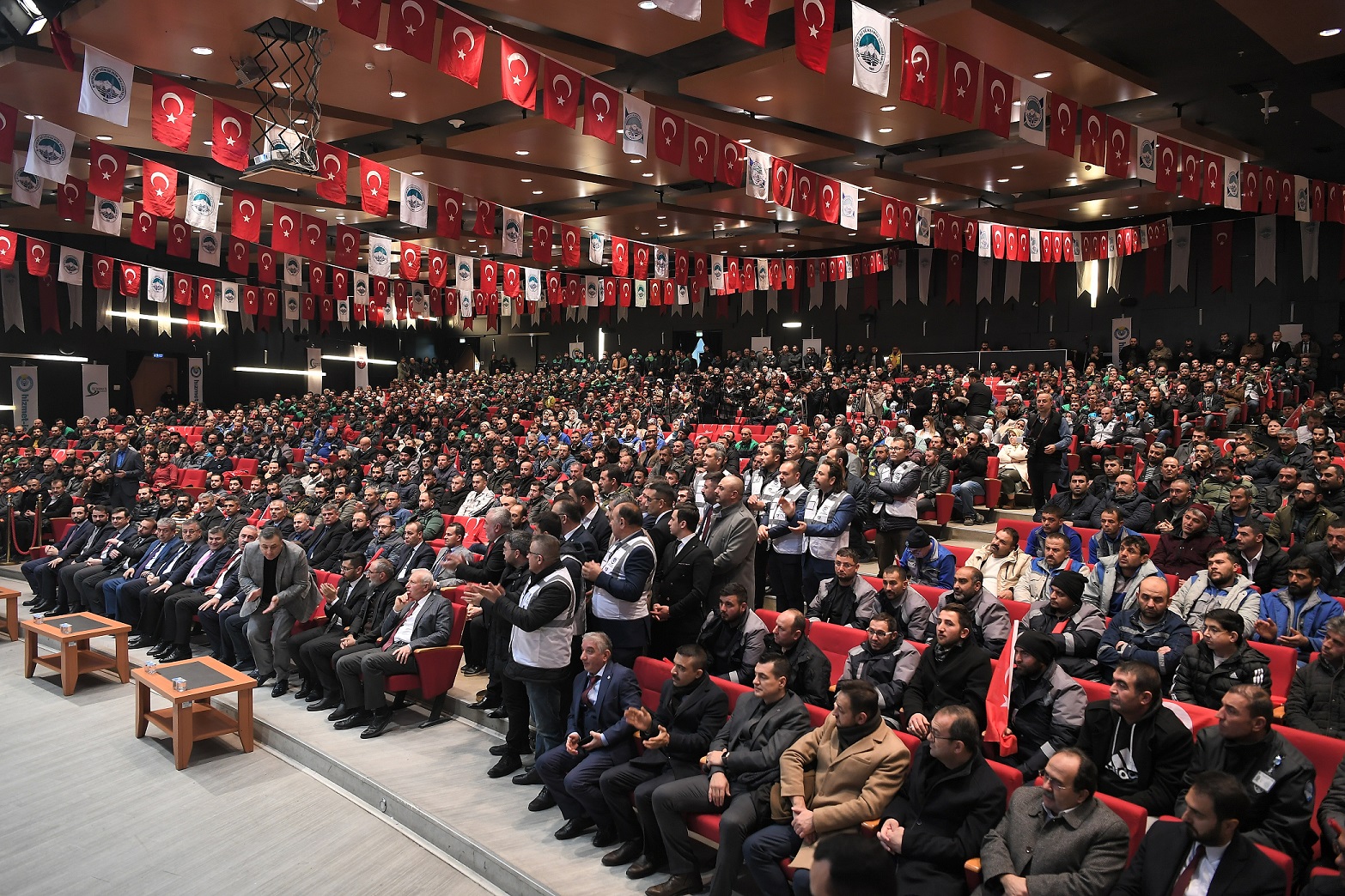 Başkan Büyükkılıç, HAK-İŞ Sendikası’nın sağduyunun sesi olduğunu, yerli ve milli, değerlerine sahip çıkan bir sendika olduğunun altını çizerek, “İnsanların hayırlısı, insana hizmet edendir. O açıdan göğsümüzü gererek anlattığımız bu güzel şehri bu noktaya getiren sizlersiniz. Siz olmasaydınız, bugün burada konuşamazdık. Her birinizin alnından öpüyorum. İyi ki varsınız, sizlere minnettarız. Gönlümüz daha fazlasını her zaman arzu eder ama imkânlarımızı zorlayarak hep daha fazlasını verme ve örnek teşkil etme anlayışı içerisinde çalışmalar yapmaya çalışıyoruz” diye konuştu.