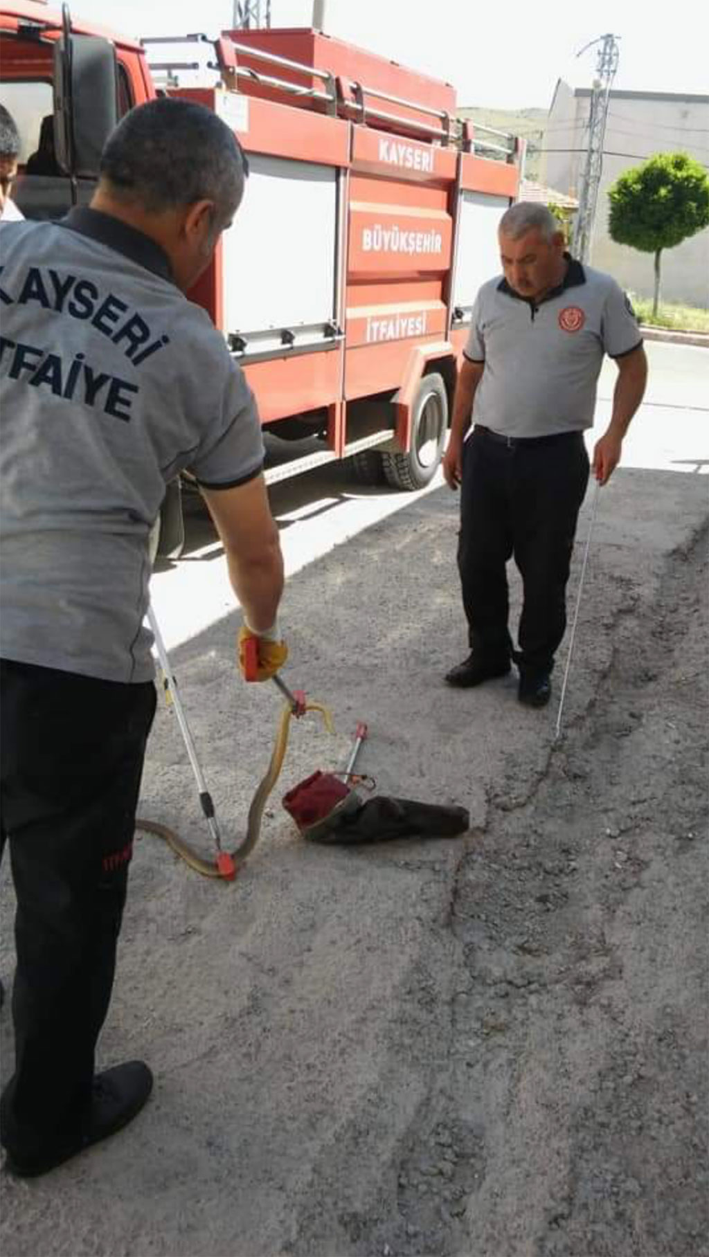 Yangın denince akla gelen itfaiye ekipleri yalnızca yangınla değil pek çok sorunla mücadele ediyor. Büyükşehir Belediyesi İtfaiye Daire Başkanlığı bünyesinde yılan yakalama timleri dahi var. Büyükşehir Belediyesi İtfaiye Daire Başkanlığı, başta yangın olmak üzere trafik kazaları, intihar girişimleri, su baskınları, enkaz altında bulunanların ve arazide mahsur kalanların kurtarılması, baca temizliği gibi onlarca soruna müdahale ederek can ve malın kurtarılması için gayret gösteriyor. İtfaiye ekipleri, bilinenlerin dışında çok sayıda bilinmeyen şikayetlere de cevap veriyor. Yılan operasyonları da bu kapsamda yapılan çalışmalar arasında. Şehir merkezinin dışındaki ağaçlık ve açık alanın bulunduğu yerleşim yerlerinde karşılaşılan yılan vakalarına da İtfaiye ekipleri müdahale ediyor. Büyükşehir Belediyesi İtfaiye Daire Başkanlığı bünyesindeki ekipler özel aparatları ile yılanlarla ilgili şikayetlere anında müdahale ederek yılanı yakalıyor ve uzak bir alanda doğaya bırakıyor. Büyükşehir Belediyesi itfaiye ekipleri 2019 yılının ilk altı ayında şikayetler üzerine farklı ilçe ve mahallede 54 yılan yakaladı.