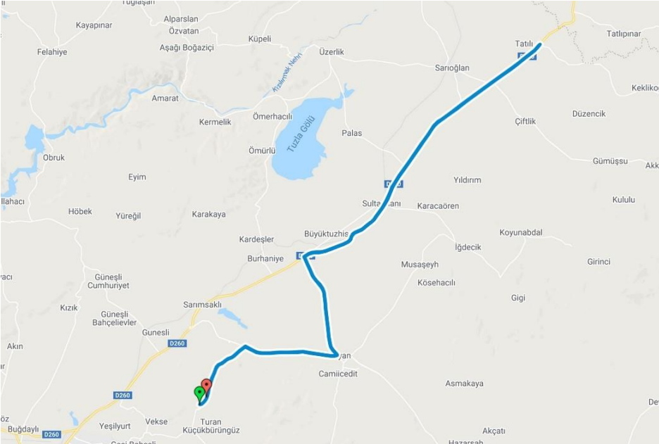önünde başlayan zorlu parkur, Bünyan, Sivas Yolu, Tatılı Dönel kavşak U Dönüşü,