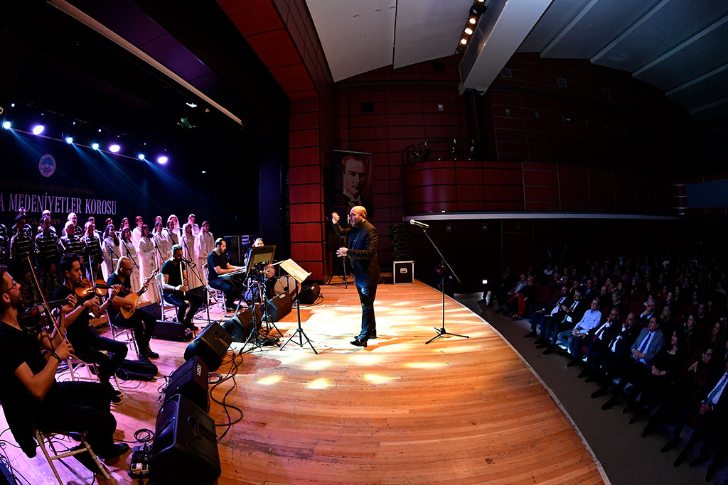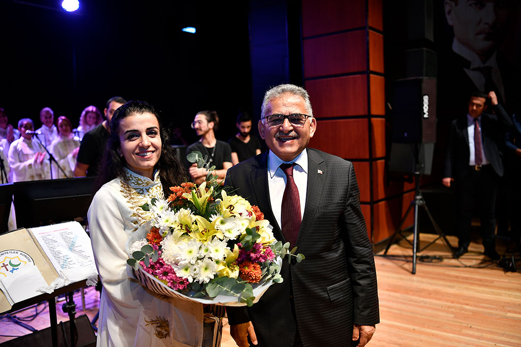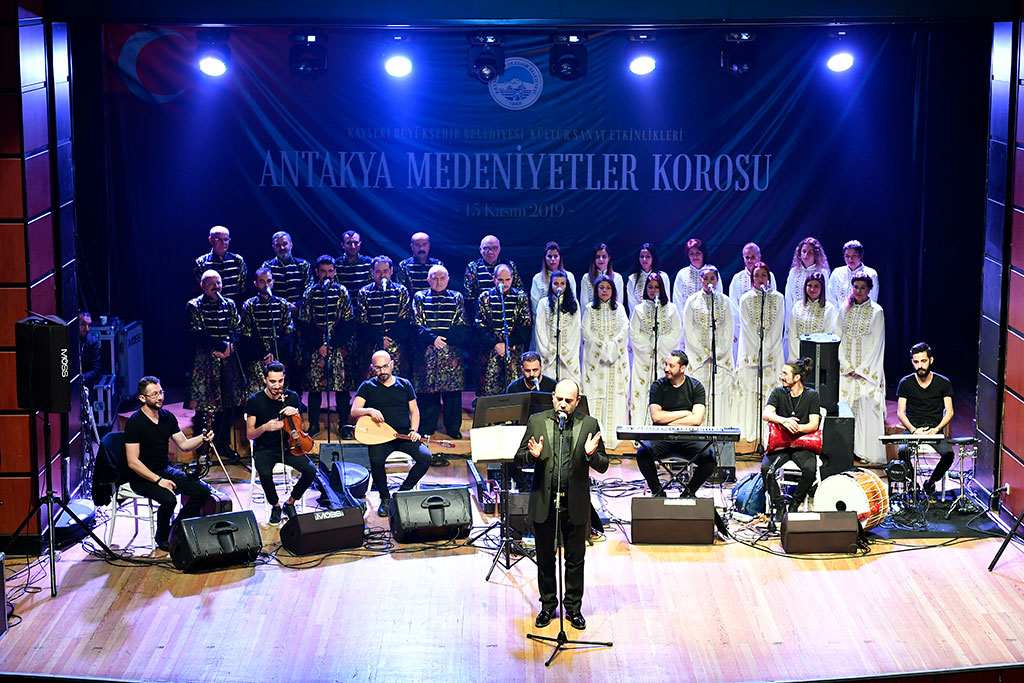 Büyükşehir Belediyesi kültür sanat etkinlikleri çerçevesinde Kayseri’ye gelen Antakya Medeniyetler Korosu, Şehir Tiyatrosu’nda muhteşem bir konser verdi. Konseri, Önceki Dönem Enerji ve Tabi Kaynaklar Bakanı Taner Yıldız ve Kayseri protokolüyle birlikte Büyükşehir Belediye Başkanı Dr. Memduh Büyükkılıç da izledi. Büyükşehir Belediyesi, dünyanın pek çok ülkesinde konser veren Antakya Medeniyetler Korosu’nu Kayseri’ye getirdi. Üç semavi dine ve altı mezhebe mensup kişilerden oluşan Antakya Medeniyetler Korosu’nun Şehir Tiyatrosu’ndaki konserini Büyükşehir Belediye Başkanı Dr. Memduh Büyükkılıç da Önceki Dönem Enerji ve Tabii Kaynaklar Bakanı Taner Yıldız ve Kayseri protokolü ile birlikte izledi. Konsere vatandaşlar da büyük ilgi gösterdi. Konser öncesi bir açıklama yapan Antakya Medeniyetler Korosu Şefi Yılmaz Özfırat, “1 saatlik konserin sonunda bu kapıdan çıkarken hepiniz Türkiye Cumhuriyeti vatandaşı olduğunuz için kendinizle gurur duyacaksınız. Bunu garanti ederiz” sözleriyle büyük alkış aldı. Medeniyetler Korosu, bu sözün gereğini yaparak Anadolu’nun tüm renklerine yer veren ve kardeşliği vurgulayan muhteşem bir konser verdi. Medeniyetler Korosu izleyiciler tarafından ayakta alkışlandı. Konser sonunda sahneye çıkan Büyükşehir Belediye Başkanı Dr. Memduh Büyükkılıç, “Bizlere bu anlamlı geceyi yaşattıkları için kendilerine teşekkür ediyoruz” dedi ve tüm koro üyelerini tebrik etti.