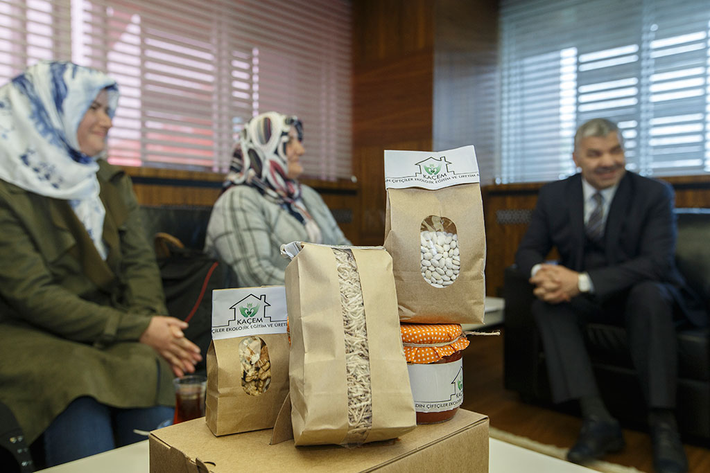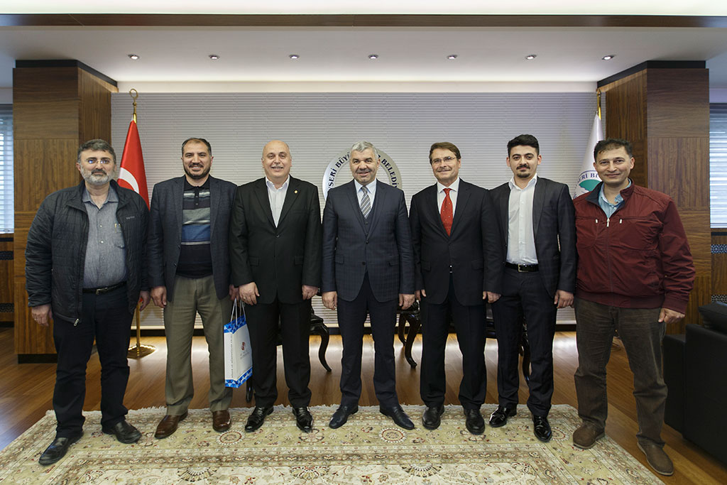 Kadın Çiftçiler Ekolojik Üretim ve Eğitim Merkezi Kooperatifi Büyükşehir Belediye Başkanı Mustafa Çelik’i ziyaret etti. Ziyarette, Başkan Çelik’e kadın çiftçilere verdiği destekler nedeniyle teşekkür edildi. Kadın Çiftçiler Ekolojik Üretim ve Eğitim Merkezi Kooperatifi Başkanı Fatma Andaç ile Yönetim Kurulu Üyeleri Büyükşehir Belediye Başkanı Mustafa Çelik ile bir süre görüştü. Kadın çiftçilere sağlanan imkanlar nedeniyle teşekkür eden Kooperatif Başkanı Fatma Andaç, “Başkanım çok şükür sizin sayenizde buralara kadar geldik. İnşallah devamını getireceğiz. Size ne kadar teşekkür etsek az. Bugüne kadar Türkiye’de hiçbir belediye başkanı sizin yaptığınız iyiliği ve yakınlığı göstermedi. Bu bizim için çok büyük bir ayrıcalık” dedi. Kayseri’deki kadın çiftçilerin Bünyan’da kurulan Ekolojik Üretim ve Eğitim Merkezi sayesinde örnek olacak çalışmalar yaptıklarını ifade eden Başkan Mustafa Çelik de “Yaptığınız çalışmalar Türkiye’ye örnek oldu. Gerek Ankara’da, gerek Külliye’de bizi temsil etmeniz gurur verici. Hem üreterek aile bütçenize katkıda bulunuyorsunuz hem de organik tarımla alternatif üretim yapılabileceğini tüm Türkiye’ye göstermiş oluyorsunuz. Bundan sonra da elimizden gelen tüm desteği sağlayacağız. Kendi ayakları üzerinde duran ve ailesine katkı veren hanımlarımızın her zaman yanında olduk, olmaya da devam edeceğiz. Yeter ki uygulanabilir bir proje gelsin. Güzel bir proje geldiği zaman biz zaten destekliyoruz” diye konuştu. Büyükşehir Belediye Başkanı Mustafa Çelik’i Erciyes Esnaf ve Sanatkarlar Derneği ve Alt Geçit Dernek Başkanı Mahir Dülgeroğlu ve dernek üyeleri, Kayseri Mobilya Sanayicileri Derneği Başkanı Tuncay Sabuncu ve yönetim kurulu üyeleri, Tapu Kadastro Bölge Müdürü Erdoğan Büyükboyacı, Sarıoğlan Sulama Birliği Başkanı Metin Aka ve birlik üyeleri, Yeraltı Çarşısı Dernek Başkanı Salih Gülay ve yönetim kurulu üyeleri, Özvatan Taşlık Mahallesi Gaziler Derneği Başkanı Ersin Bingöl ve dernek üyeleri, Kartal Endüstri Meslek Lisesi Mezunları Derneği, Mimarlar-Mühendisler Grubu Başkanı Fatih Kaya ve Yönetim Kurulu Üyeleri, Diyanet İşleri Eski Başkan Yardımcısı Necmettin Nursaçan ve Uluslararası Şehit Ömer Halisdemir Anadolu İmam Hatip Lisesi Okul Müdürü Sıddık Kaya ile bazı kişi, kurum ve kuruluşlar da ziyaret etti.