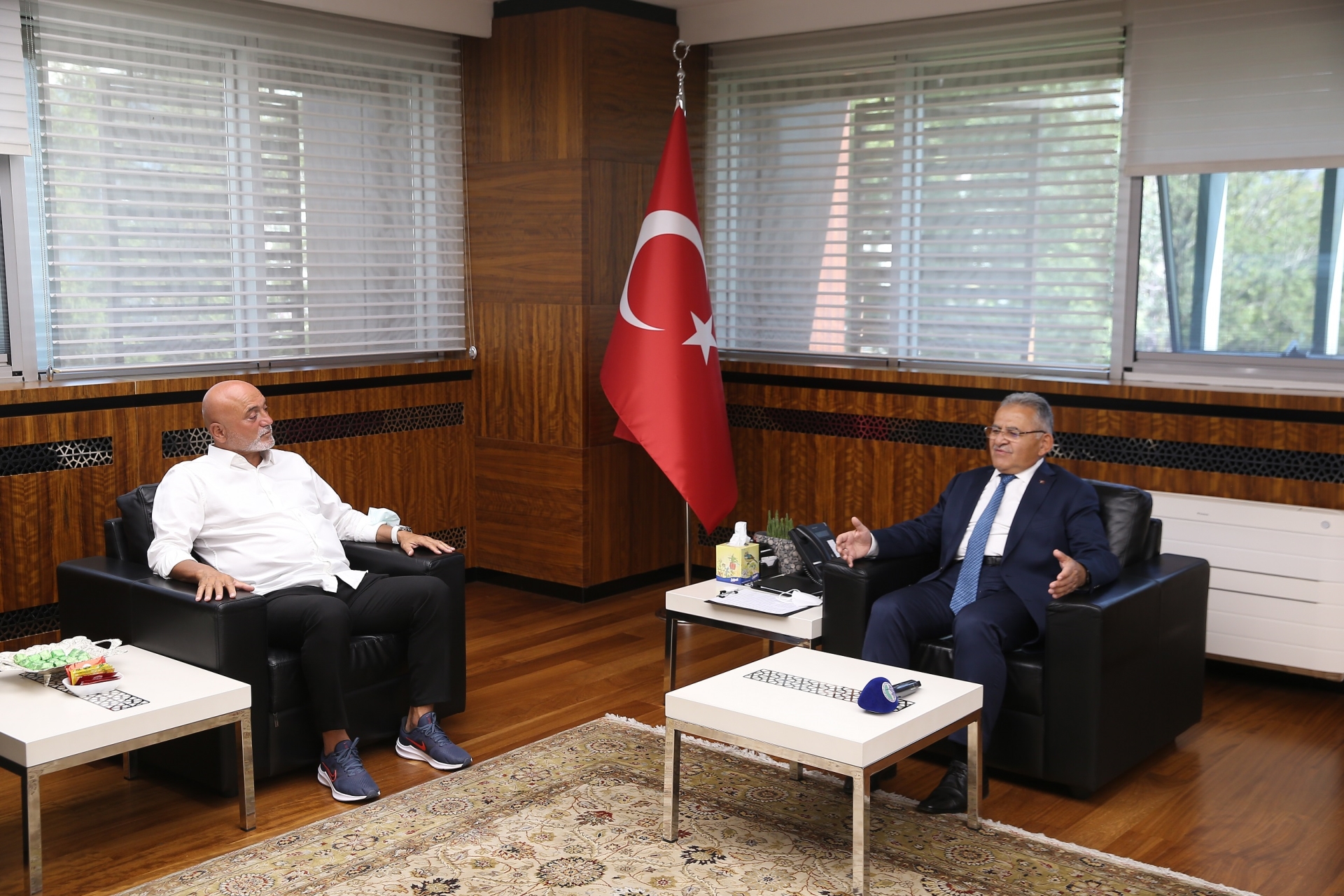Memduh Büyükkılıç’a nezaket ziyaretinde bulunan Yukatel Kayserispor’un çiçeği