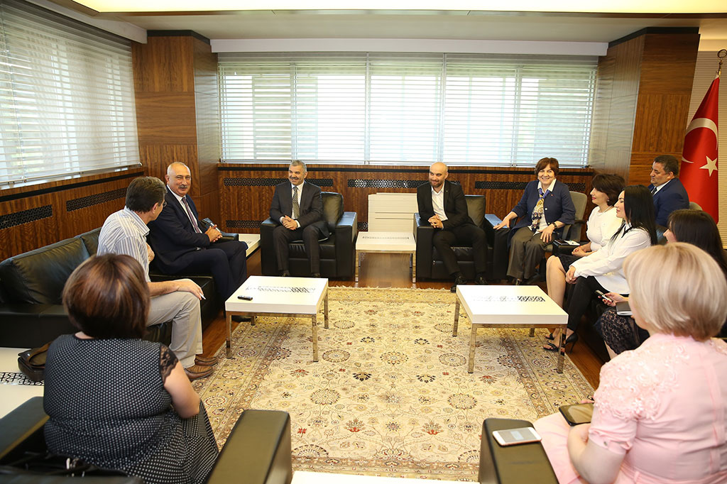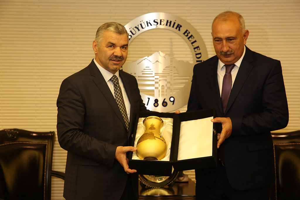 Kayseri’nin kardeş şehri olan Rusya Federasyonu’na bağlı Kabardey-Balkar Cumhuriyeti’nin başkenti Nalçik’ten bir heyet Büyükşehir Belediye Başkanı Mustafa Çelik’i ziyaret etti. Heyette Kabardey-Balkar Cumhuriyeti Bakanı Anzor K’uraşınova da yer aldı. Kardeş şehrimiz Nalçik’ten gelen heyette Farklı Milletler ve Dinlerden Sorumlu Bakan Anzor K’uraşınova’nın yanı sıra eğitim bürokratları Vilademir Bakatsev ve Aminat Şogenova ile medya temsilcileri yer aldı. Ziyarette, kardeş şehrimizden selam ve esintiler getiren heyete teşekkür eden Büyükşehir Belediye Başkanı Mustafa Çelik, Kayseri’nin 6 bin yıllık tarihinde olduğu gibi bugünde bölgesinin cazibe merkezi konumunda olduğunu söyledi. Kayseri’nin misafirperver bir şehir olduğunu da belirterek, bu özelliğini her zaman gösterdiğini ifade eden Başkan Çelik, “Türk ve İslam coğrafyasında sıkıntı içindeki dost ve kardeşlerimize bağrımızı açtık ve ev sahipliği yaptık. Bu coğrafyada başı sıkışan dostumuz, soydaşımız, kardeşimizle birlikte yaşıyoruz. Gelen misafirlerimiz zaman içinde ev sahibi oldular. Çerkes kardeşlerimiz de şimdi ev sahibi konumundalar ve başka yerlerden gelenlere kucak açıyorlar. Gelenleri şehrimizin bir zenginliği olarak görüyoruz. Hepimiz birlikte biriz ve büyüğüz” dedi. Kabardey-Balkar Cumhuriyeti Bakanı Anzor K’uraşınova da ilk kez Türkiye’ye geldiğini belirtti ve Kayseri’yi çok güzel bulduğunu söyledi. Kayseri’ye Uluslararası Uzunyayla Çerkes Festivali için geldiklerini ifade eden Konuk Bakan, Başkan Mustafa Çelik’e festivale verdiği katkı nedeniyle teşekkür etti. Konuk Bakan, “Dünyada en rahat ve en güzel şehir Nalçik bilirdim. Şimdi gördüm ki dünyanın en güzel şehri Nalçik ile birlikte Kayseri’ymiş” diye konuştu. Ziyarette ayrıca karşılıklı hediyeler takdim edildi.