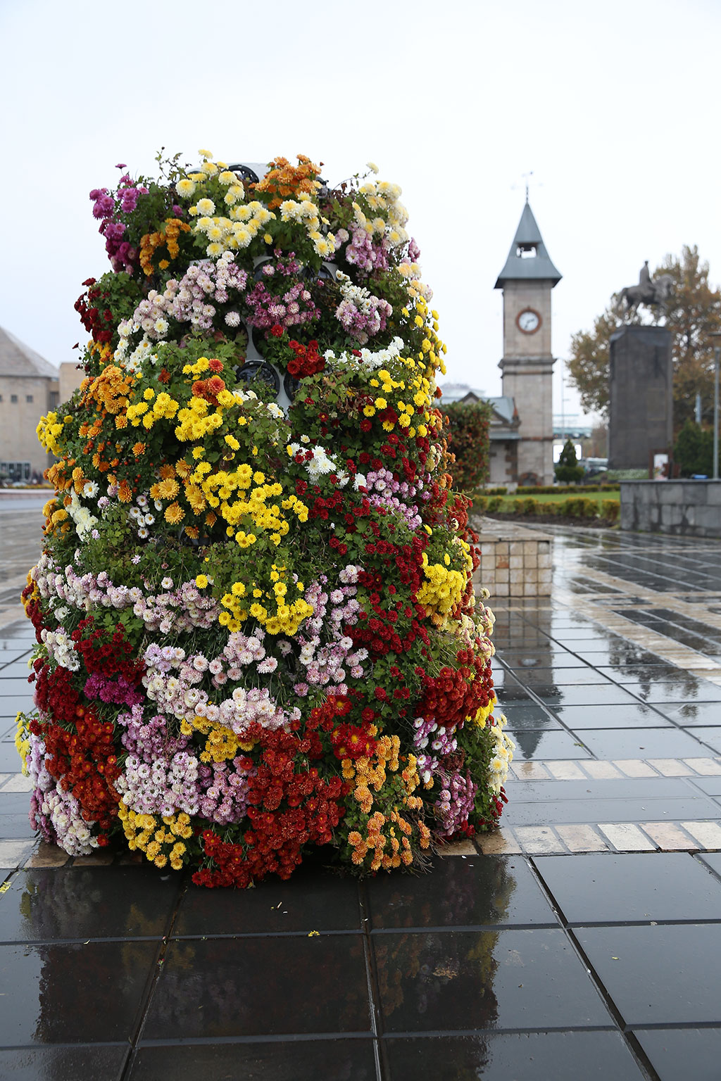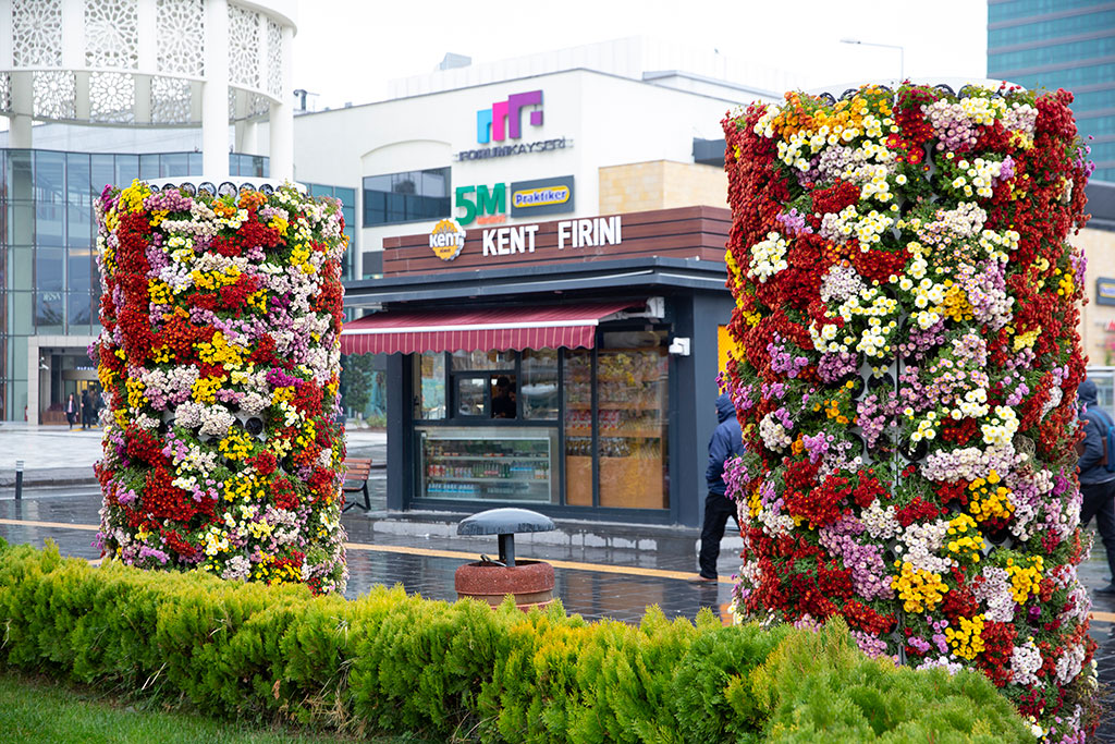 Kayseri Büyükşehir Belediyesi’nin yaptığı çalışmalarla çiçek bahçesine dönüşen Kayseri, şehir merkezine yılın ilk karının düştüğü şu günlerde dahi bu görünümünü kaybetmedi. Sütun, küre, ağaç gibi formlarda yapılan modüler saksılar şehre ayrı bir güzellik katmaya devam ediyor. Büyükşehir Belediyesi Park Bahçe ve Ağaçlandırma Daire Başkanlığı kış mevsiminin kendini hissettirmeye başladığı şu günlerde dahi şehrin güzelliğinin korunması için çalışmalarını sürdürüyor. Orta Anadolu’nun sert karasal ikliminin hakim olduğu ilimizde gece ve gündüz arasındaki sıcaklık farkına rağmen park, bahçe ve orta refüjler başta olmak üzere pek çok yerde rengarenk çiçekler göze çarpıyor. Şehrin farklı bölgelerinde yer alan sütün, ağaç, küre, çiçek deseni gibi formlardaki modüler saksılar Kayseri’ye ayrı bir güzellik katıyor. Büyükşehir Belediyesi ekiplerince Mustafa Kemal Paşa Bulvarı Gültepe Parkı önü, Sivas Caddesi Kavşağı-Büyükşehir Belediyesi önü, Cumhuriyet Meydanı, Hunat Camii önü, Erkilet Havaalanı Yolu ve Sanayi Odası Kavşağı gibi çeşitli bölgelere yerleştirilen modüler saksılara 25 bin 137 adet kasımpatı dikildi. Büyükşehir Belediyesi Park Bahçe ve Ağaçlandırma Daire Başkanlığı ekipleri ayrıca 2019 yılı Nisan ayında açarak güzelliklerini sergileyecek olan 438 bin 475 adet lale soğanları, 12 bin adet sümbül ve 166 bin adet üzüm sümbülü dikimi yaptı.