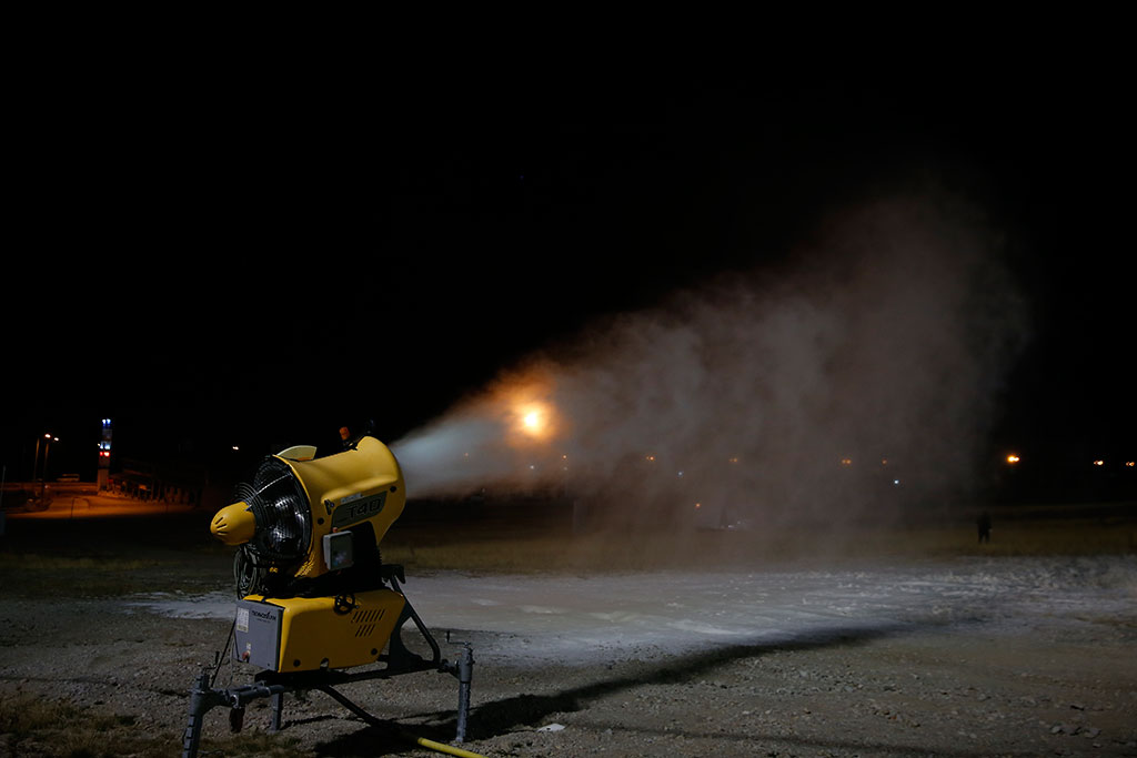 Erciyes’te geceleri hava şartlarının müsait olmasıyla birlikte karlama çalışmalarına başlandı. Erciyes A.Ş. bünyesindeki 154 suni karlama makinesi saatte 65 metreküp kar üretiyor. Kayseri Büyükşehir Belediyesi’nin yatırımlarıyla dünyanın sayılı kayak merkezleri arasına giren Erciyes’te, yeni sezon için çalışmalar gece gündüz devam ediyor. Yeni sezon hazırlıkları çerçevesinde karlama çalışmalarına başlandı. Kasım ayının ortalarından itibaren hava sıcaklığının geceleri sıfırın altına inmesiyle birlikte suni kar makineleri çalıştırıldı. 154 suni kar makinesi geceleri çalışarak kar üretiyor. Yapılan çalışmalarda saatte 25 metreküp su tüketerek 65 metreküp civarında kar üretimi gerçekleştiriliyor. Suni karlama makineleri tarafından üretilen karlarla, kar yağışı olmaması halinde dahi Aralık ayında kayak sezonu açılacak.