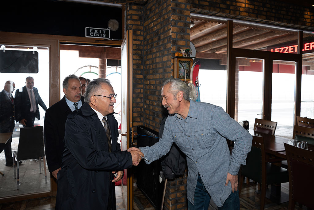Kayseri Büyükşehir Belediye Başkanı Dr. Memduh Büyükkılıç, Erciyes’te kayak sezonunun hafta sonu açılması için yoğun bir şekilde çalıştıklarını söyledi. Başkan Büyükkılıç, sezonun açılması için suni karlama makinelerinin de yoğun bir şekilde çalıştığını kaydetti. Büyükşehir Belediye Başkanı Dr. Memduh Büyükkılıç, Erciyes’te incelemelerde bulundu. Kar yağışı sonrası Erciyes’in durumunu gören ve Erciyes A.Ş. Yönetim Kurulu Başkanı Murat Cahid Cıngı ile görüşen Başkan Memduh Büyükkılıç, pistlerdeki çalışmaları da takip etti. Bu yıl Erciyes’te bereketli bir sezonun geçmesini beklediklerini ifade eden Başkan Memduh Büyükkılıç, kayak sezonunun hafta sonu açılması için yağan karın yetersiz olduğunu; ancak 154 suni karlama makinesinin yoğun bir şekilde çalıştığını söyledi. Pistler bölgesinde kar üretiminin devam ettiğini dile getiren Başkan Büyükkılıç, hava şartlarında olağanüstü bir durumun olmaması halinde hafta sonu kayak sezonunu açacaklarını belirtti. Büyükşehir Belediye Başkanı Büyükkılıç, Erciyes’te bulunan esnafları da ziyaret ederek hayırlı işler diledi ve bir süre sohbet etti.