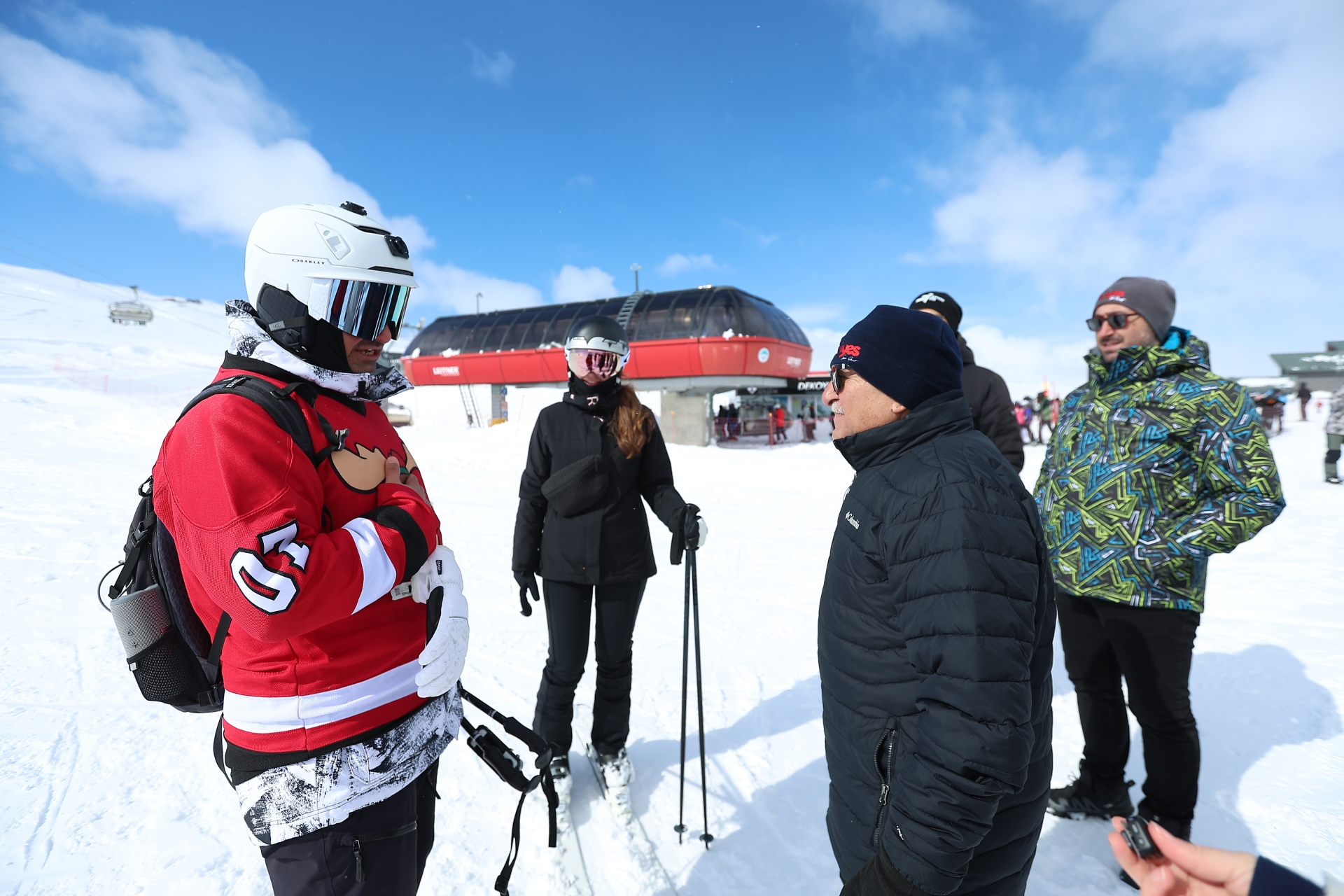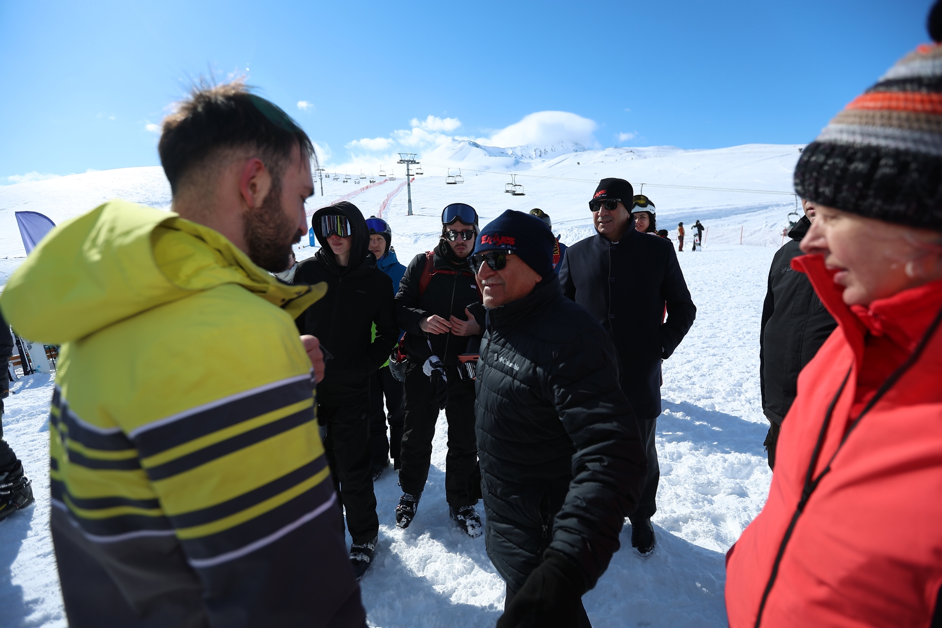 Büyükkılıç, Erciyes Kayak Merkezi ziyaretinde sohbet ettiği kayak severlere Kayserispor atkısı hediye etti.