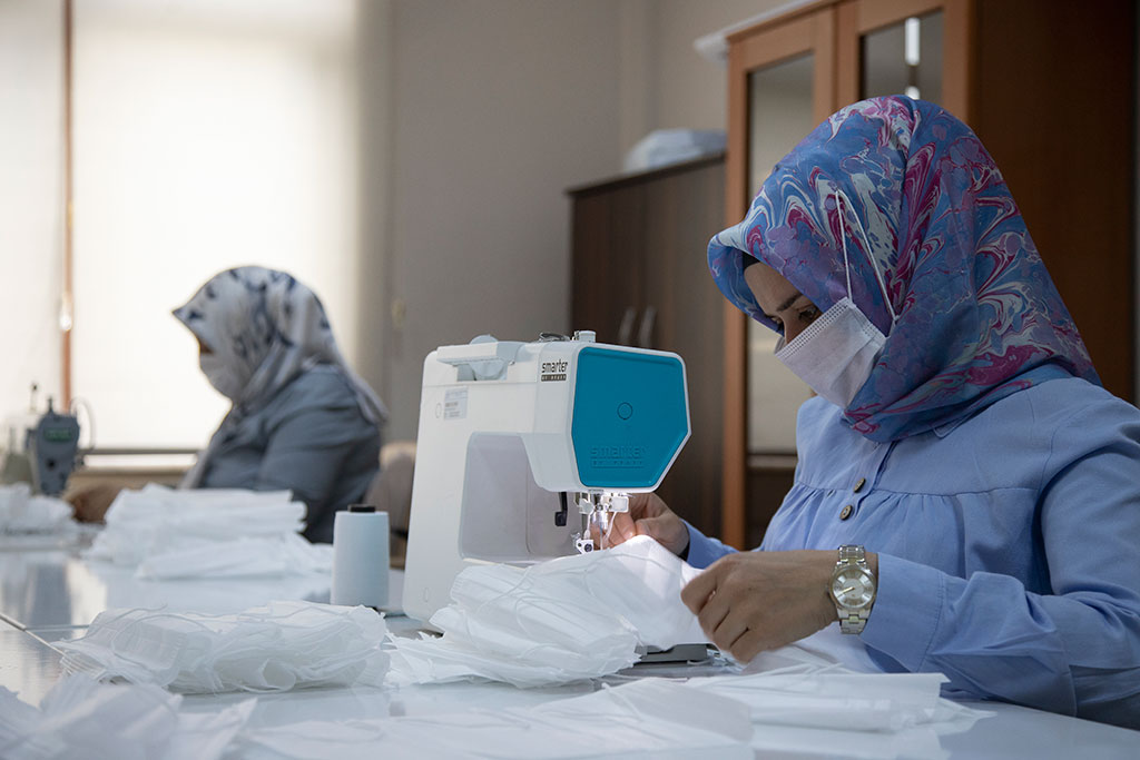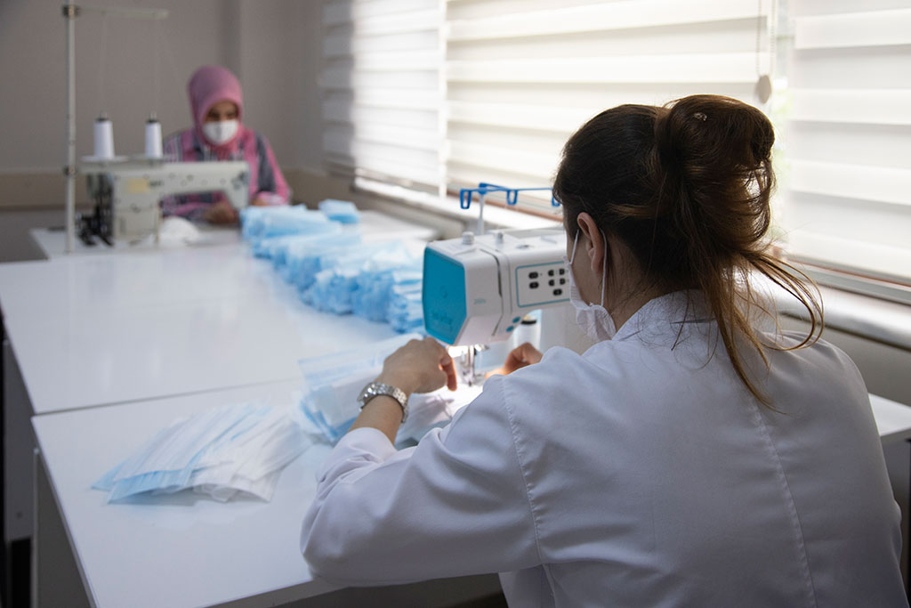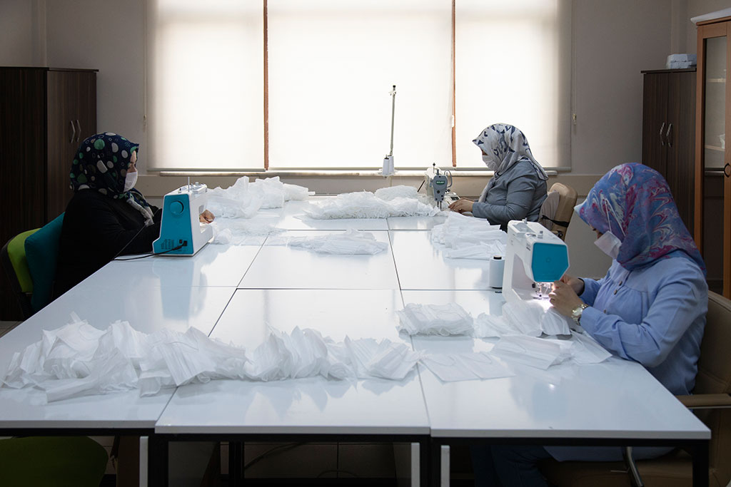 Koronavirüsün ülkemizde görülmeye başlandığı ilk günden itibaren maske üretimine başlayan Kayseri Büyükşehir Belediyesi bünyesindeki KAYMEK Sanat ve Mesleki Eğitim Şirketi bugüne kadar ürettiği 750 bin adet maskeyi ücretsiz olarak kamu kurumları ile vatandaşların hizmetine sundu. KAYMEK eğitmenleri maske üretimi ile Kayseri’deki kamu kurum ve kuruluşları ile vatandaşların maske ihtiyaçlarını karşılama noktasında önemli bir çalışma gerçekleştirdi. Ülkemizde koronavirüs tehdidi her geçen gün azalmaya devam etse de Sağlık Bakanlığı tedbirin sürdürülmesi ve yeni normale göre sosyal hayatımızı düzenlememiz konusunda uyarılarını önemle duyuruyor. Dolayısıyla maske, mesafe ve temizlik konusunda taviz vermeden kurallara uyulması gerekiyor. Bu bilinçle hareket eden ve maske üretimini sürdüren KAYMEK bu güne kadar toplam 750 bin maske üreterek koronavirüs ile mücadelede önemli bir rol oynamaya devam ediyor.