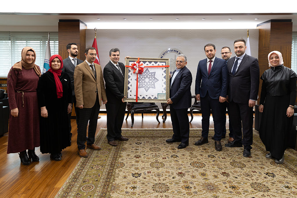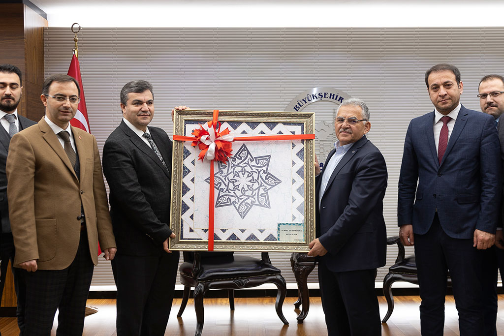Sanat ve mesleki eğitimde Anadolu'nun markası olan KAYMEK A.Ş yönetimi Büyükşehir Belediye Başkanı Dr. Memduh Büyükkılıç’ı ziyaret ederek, 14 Mart Tıp Bayramı’nı kutladı. 14 Mart Tıp Bayramı nedeniyle Genel Sekreter Yardımcısı Serdar Öztürk, İşletme ve İştirakler Daire Başkanı Oğuzhan Postallı ve KAYMEK A.Ş. Yöneticileri Nöroloji Uzmanı olan Büyükşehir Belediye Başkanı Dr. Memduh Büyükkılıç’ı makamında ziyaret etti. Ziyaretten duyduğu memnuniyeti dile getiren Başkan Memduh Büyükkılıç, 14 Mart Tıp Bayramı'nı kutlayan çalışma arkadaşlarına düşünceli davranışlarından dolayı teşekkür etti. Ziyarette, Başkan Büyükkılıç’a Ebru Sanatı’ndan yapılmış bir tablo hediye edildi.