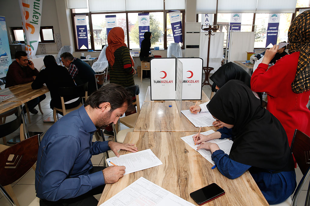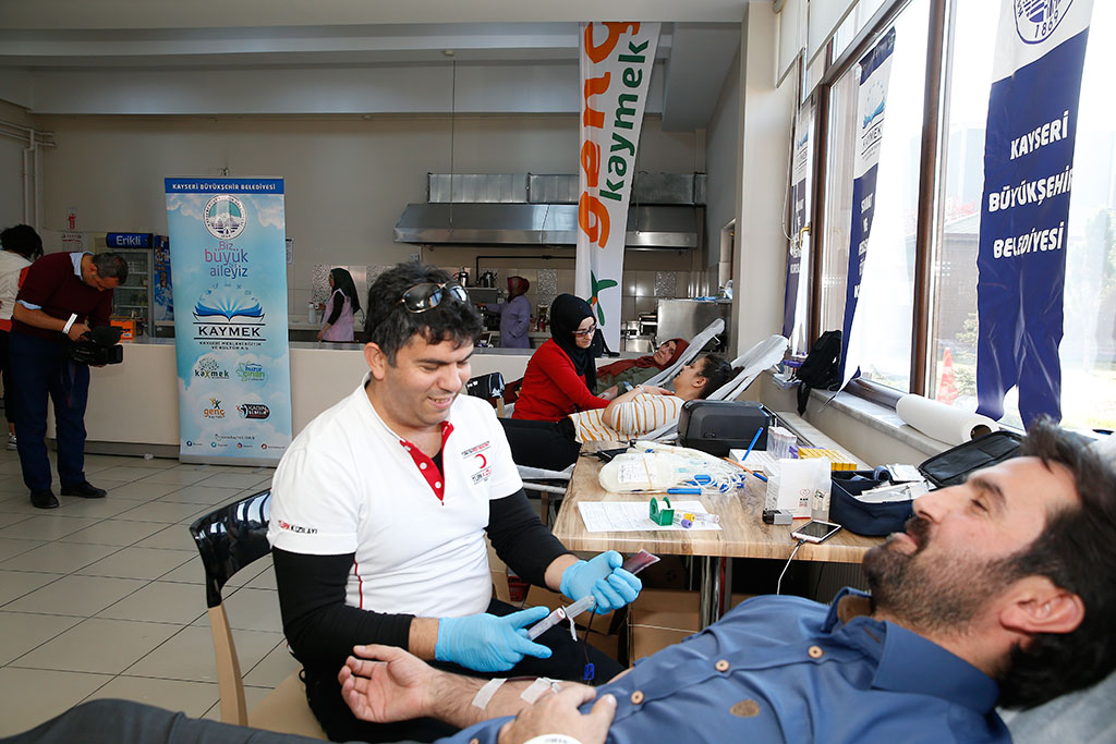 Sanat ve mesleki eğitimde Anadolu’nun markası olan KAYMEK, sosyal sorumluluk projeleriyle de dikkat çekiyor. Büyükşehir Belediyesi bünyesindeki KAYMEK personeli ve kursiyerleri Kızılay’a kan bağışında bulundu. Büyükşehir Belediyesi bünyesindeki KAYMEK A.Ş.’nin İhtisas Merkezi’nde Kızılay Kan Merkezi’ne kan bağışında bulunuldu. Kampanyaya KAYMEK personeli ve kursiyerleri büyük ilgi gösterdi. Yapmış olduğu eğitim faaliyetleriyle dikkat çeken KAYMEK, sosyal sorumluluk projeleriyle de ihtiyaç duyulan alanlarda farkındalık yaratmak için gayret gösteriyor. Bu anlamda KAYMEK’te geleneksel hale getirilen kan bağışı kampanyası gün boyunca devam etti.