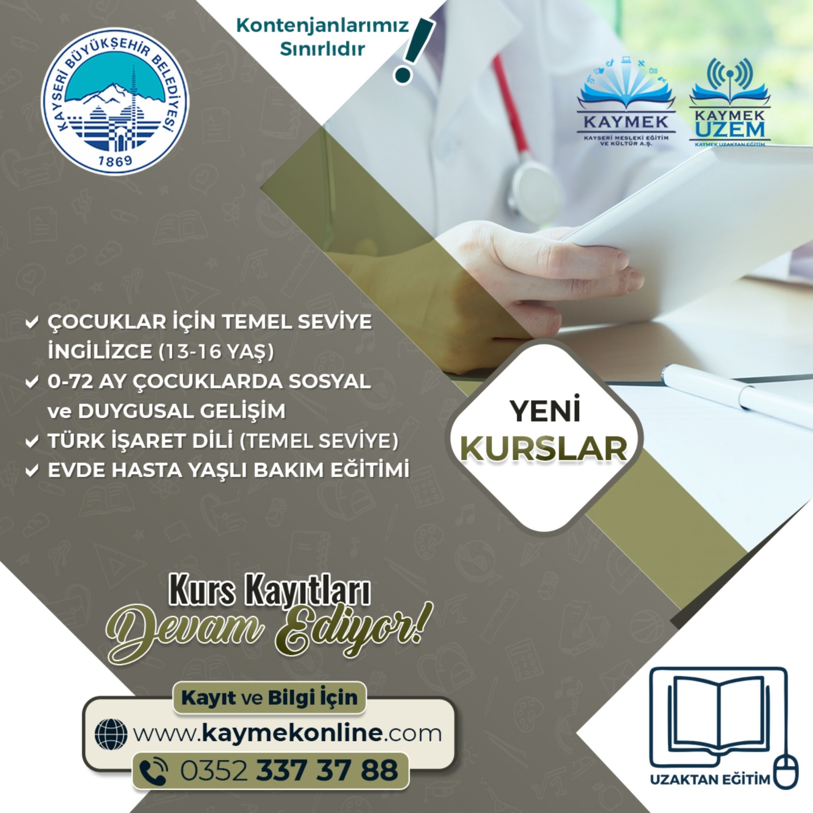 Buna göre LGS-YKS, KPSS Lisans, KPSS Eğitim Bilimleri, Türk İşaret Dili (Temel Seviye), Evde Hasta Yaşlı Bakım Eğitimi, Çocuklar İçin Temel Seviye İngilizce (13-16 Yaş), 0-72 Ay Çocuklarda Sosyal ve Duygusal Gelişim kurslarında kayıtlar devam ediyor.