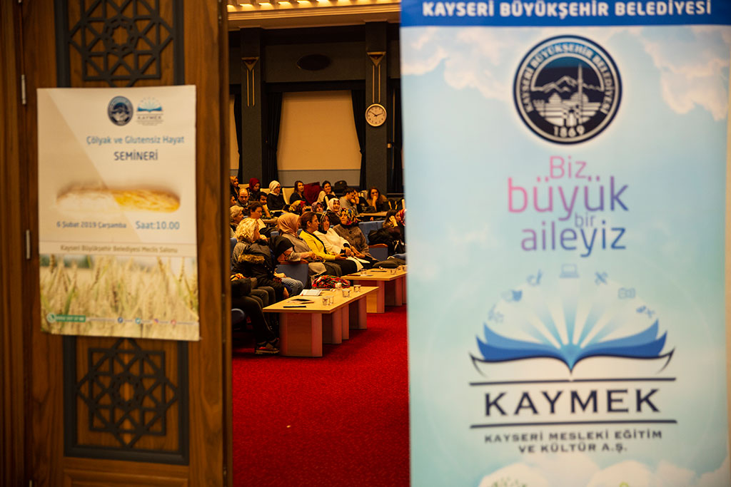 Büyükşehir Belediyesi bünyesindeki KAYMEK, sanat ve mesleki eğitim kurslarının yanı sıra sağlıklı bir toplum için de çalışıyor. Bu kapsamda KAYMEK tarafından İl Sağlık Müdürlüğü ile birlikte “Çölyak ve Glutensiz Hayat” konulu bir seminer gerçekleştirildi. KAYMEK tarafından düzenlenen “Çölyak ve Glutensiz Hayat” konulu seminer Büyükşehir Belediyesi Meclis Salonu’nda yapıldı. Seminere konuşmacı olarak katılan Diyetisyen Dr. Serap Yavuz, Çölyak hastalığı ile ilgili bilgiler verdi. Hastalığın genetiksel olduğunu ifade eden Yavuz, genetik yatkınlığın uygun çevresel koşullarla hastalığa dönüştüğünü belirtti. İnsan hayatının her döneminde bu hastalığın görülebildiğini dile getiren Serap Yavuz, belirtilerin başka hastalıklarla karıştırılması nedeniyle tanıda gecikildiğini kaydetti. ÇÖLYAK HASTALARI İÇİN YEMEK KURSU Büyükşehir Belediyesi bünyesindeki KAYMEK, çölyak hastaları için önemli bir çalışma daha gerçekleştiriyor. KAYMEK tarafından çölyak hastalarının yiyebileceği yemeklerin öğretileceği yemek kursu açılacak. Büyükşehir Belediyesi Meclis Salonu’nda düzenlenen seminer sonrası açılacak olan yemek kursuna katılmak isteyenlerin talepleri de alındı.