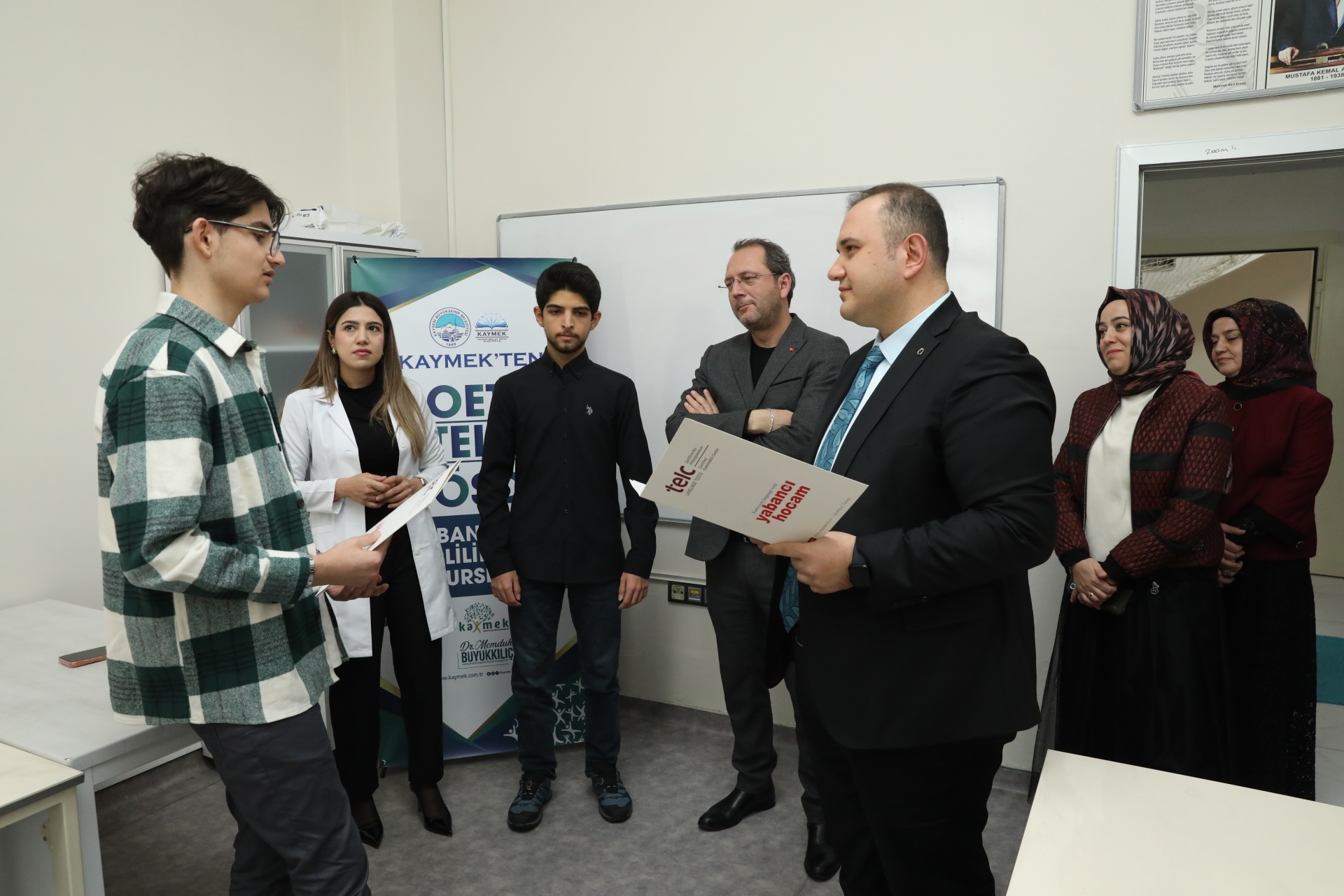 Kayseri Büyükşehir Belediyesi Genel Sekreter Yardımcısı Fatih Temeltaş ile İşletme ve İştirakler Daire Başkanı Erkan Küp, yabancı dil yeterlilik sınavı kursunu ziyaret ederek kursiyerlerle bir araya geldi. Ziyarette kursiyerlerin talep ve önerileri dinlenirken, elde edilen başarıdan duyulan memnuniyet dile getirildi.