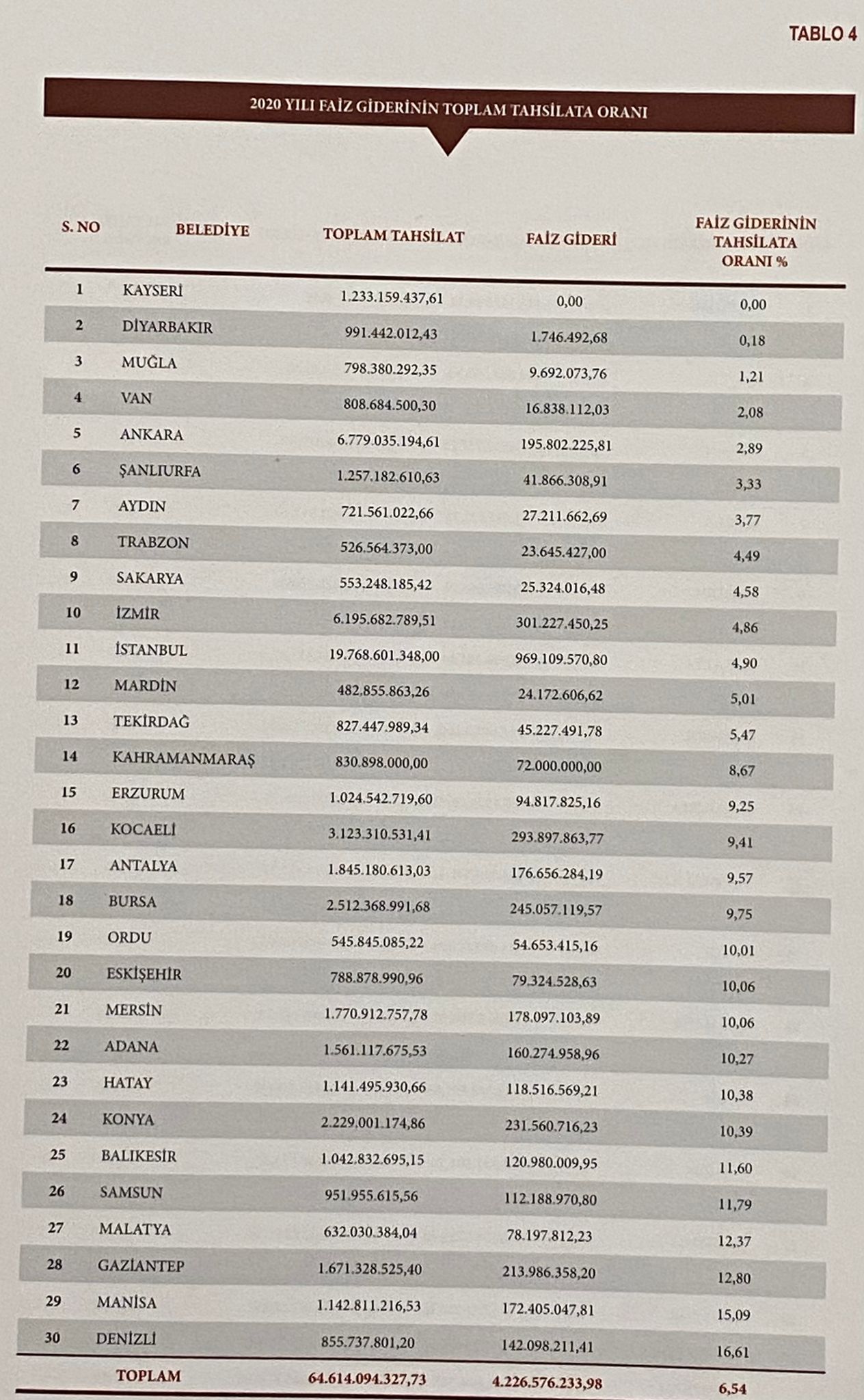 Büyükşehir Belediyesi, Belediyeler Arası Bütçe Kullanım Performanslarının Resmi