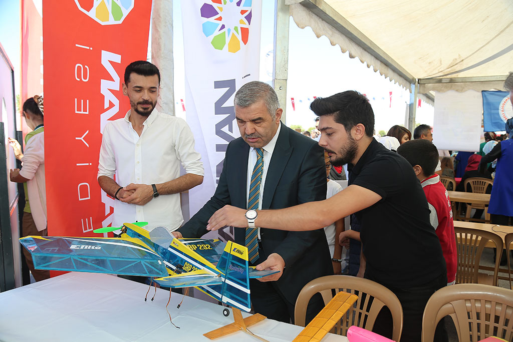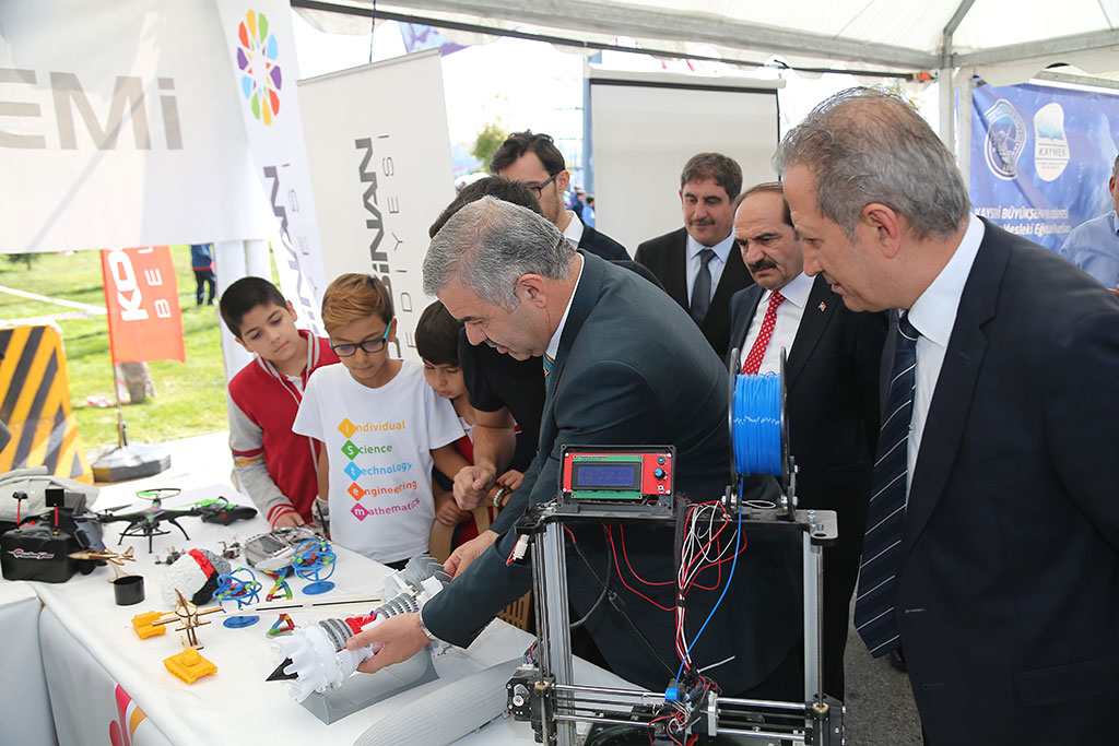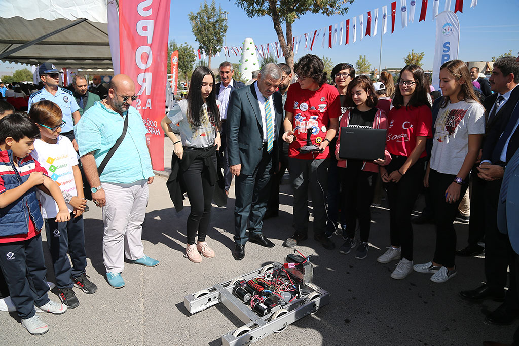 Kayseri Bilim Merkezi tarafından düzenlenen ve üç gün sürecek olan Kayseri Bilim Şenliği başladı. Bu yıl 3.’sü yapılan Bilim Şenliği’ne büyük ilgi gösterildi. Büyükşehir Belediye Başkanı Mustafa Çelik, Kayseri Bilim Merkezi’nin çalışmalarıyla bilimsel alt yapıya destek verdiklerini belirterek, tüm ailelere bu tür aktivitelere katılma çağrısı yaptı. Kayseri Bilim Merkezi’nde yapılan 3. Kayseri Bilim Şenliği 20 ayrı kurumun desteğiyle başladı. Bilim Şenliği’ne özellikle öğrenciler büyük ilgi gösterdi. Bilim Şenliği’nin açılışına Büyükşehir Belediye Başkanı Mustafa Çelik de katıldı. Başkan Çelik, şenlik alanında oluşturulan stantları gezdi, öğrencilerle sohbet etti, KAYMEK standında ebru yapımına katıldı. Şenlikte yer alan bir robotun Başkan Mustafa Çelik'e Türk Bayrağı getirmesi de büyük alkış aldı. “BİLİMSEL ALT YAPIYA DESTEK VERİYORUZ” Açılışta yaptığı konuşmada ülkemizin ve dünyanın ihtiyacı olan bilimi, topluma sevdirmek ve bilimsel alt yapıya destek vermek için Bilim Şenliği’ni düzenlediklerini ifade eden Başkan Çelik, “Sanayici ve iş adamlarımızın katıldığı toplantılarda özellikle vurguladığım bir konuyu burada da ifade etmek istiyorum. Şehrimizin ve dolayısıyla ülkemizin gelişmesi için yapmamız gerekenlerin başında katma değeri yüksek, teknolojik ürünler üretmek geliyor. Yeni buluşlar ve yeni markalar ortaya koymalıyız. Bunu yaptığımız takdirde hiçbir saldırıdan etkilenmeyen güçlü bir ülke olabiliriz. Bunun yolu da bilimsel çalışmalardan geçiyor. Kayseri Bilim Merkezi’ni en başta kurma nedenimiz işte bu. Burada teknolojik ürünlerin üretilmesine yönelik bilimsel çalışmalar yapılmıyor elbette; ama burada bilimsel alt yapıya destek veriliyor. Geleceğimiz olan çocuklarımızın bilimi sevmesi sağlanıyor. Bu merkez bilimi eğitimin bir parçası haline getiriyor” dedi. “SANAL ALEMDE VAKİT ÖLDÜRMEYİN, GERÇEK ALEME GELİN” Konuşmasında özellikle gençlerin sanal alemden çıkmalarını isteyen Başkan Çelik, sözlerini şöyle sürdürdü: “İnsanlar boş kalan zamanlarında ya sanal alemde zaman öldürecek ya da gerçek alemde kendini geliştirecek. İşte bizim amacımız, çocuklarımızı sanal alemin çekiciliğinden ve büyüsünden kurtarmaktır. Bunun için gerçek alemde onların ilgisini çekebilecek imkanlar oluşturmaya çalışıyoruz. İşte gerçek alem burası.” 20 AYDA 300 BİN ZİYARETÇİ 20 ay önce açtıkları Kayseri Bilim Merkezi’nin kısa sürede şehrin en gözde mekanlarından biri haline geldiğini vurgulayan Büyükşehir Belediye Başkanı Çelik, yapmış olduğu etkinliklerle bilime olan ilgiyi artıran, sadece Kayseri’nin değil Anadolu’nun Bilim Merkezi olan Kayseri Bilim Merkezi’ni 20 ay içinde 300 bin ziyaretçinin gezdiğini açıkladı. Bilim Merkezi’nin farklı etkinliklerle bilime olan ilgiyi artırdığını vurgulayan Başkan Mustafa Çelik, “Bu ilginin daha da artması için gerçekleştirdiğimiz ve üçüncüsünü düzenlediğimiz Kayseri Bilim Şenliği’nde 7’den 70’e toplumun tüm kesimlerine hitap eden farklı disiplinlerde 100’e yakın atölye, bilimsel gösteriler, sahne şovları ve farklı etkinlikler yapılacak. 20’den fazla kurum katılıyor” diye konuştu. Kayseri Bilim Şenliği kapsamında ortaokul ve liselerden oluşan 22 takımın katılımıyla güneş enerjili araç yarışı da gerçekleştirileceğini ifade eden Başkan Çelik, tüm ailelerin özellikle çocukları için yapılacak etkinlikleri takip etmelerini istedi. Başkan Çelik, şenliğe destek veren kurumlara da teşekkür etti. “HAYALLERİNİZİN PEŞİNDEN GİDİN” Büyükşehir Belediye Başkanı Mustafa Çelik, Kayseri Bilim Merkezi’nin TÜBİTAK’ın davetiyle İstanbul’da yapılan Teknoloji Festivali’ne katıldığını da ifade ederek sözlerinin sonunda Cumhurbaşkanımızın Teknofest’te ifade ettiği bir sözü hatırlattı. Başkan Çelik, “Sayın Cumhurbaşkanımız Recep Tayyip Erdoğan’ın İstanbul’daki Teknofest’te ifade ettiği gibi Hayallerinizin peşinden gidin. Hayallerinize ulaşmak için de sanal aleme ayırdığınız vakti gerçek aleme ayırarak çok çalışın. Böyle olursa başkalarının önüne geçiyorsunuz, şehrimiz başka şehirlerin önüne geçiyor ve ülkemiz başkan ülkelerin önüne geçiyor” dedi. ÜÇ GÜN SÜRECEK Bu yıl 3.’sü düzenlenen Kayseri Bilim Şenliği kapsamında hafta sonu bir dizi etkinlik gerçekleştirilecek. 100’e yakın atölye, bilim gösterileri, sahne gösterileri ve farklı temalarda etkinliklerin yapılacağı Bilim Şenliği 10.00 ile 16.00 saatleri arasında gezilebilecek.