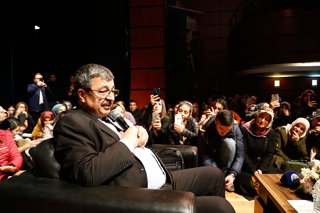 Kayseri Büyükşehir Belediyesi kültür sanat etkinlikleri çerçevesinde ilimize gelen Yazar Hayati İnanç, “Can Veren Pervaneler“ konulu söyleşiye katıldı. Kayseri’nin bir ilim merkezi olduğunu ifade eden İnanç, Kayseri’yi bereketli bir şehir olarak tanımladı. Kayseri Büyükşehir Belediyesi kültür sanatsal etkinlikleri kapsamında Şehir Tiyatrosu’nda bir söyleşi düzenlendi. “Can Veren Pervaneler” konulu söyleşiye Yazar Hayati İnanç katıldı. Söyleşiye büyük ilgi gösteren Kayserililer salonu tıklım tıklım doldurdu. Özellikle gençlerin büyük ilgi gösterdiği söyleşide, salonda yer kalmaması nedeniyle bir grup genç söyleşiyi sahnede takip etti. Gösterilen ilgiden büyük memnuniyet duyduğunu belirten ve Kayserililere teşekkür eden Yazar Hayati İnanç, Kayseri’nin ticaret merkezi olarak görüldüğünü; ancak aynı zamanda bir ilim merkezi olduğunu söyledi. Kayseri’nin çok büyük şairler ve yazarlar yetiştirdiğini dile getiren İnanç, Kayseri’yi bereketli bir şehir olarak tanımladı. Yazar Hayati İnanç, söyleşide “Ben sizin dedelerinizin mektuplarını getirdim” diyerek atalarımızın yaşantısından ve öğütlerinden örnekler sundu.