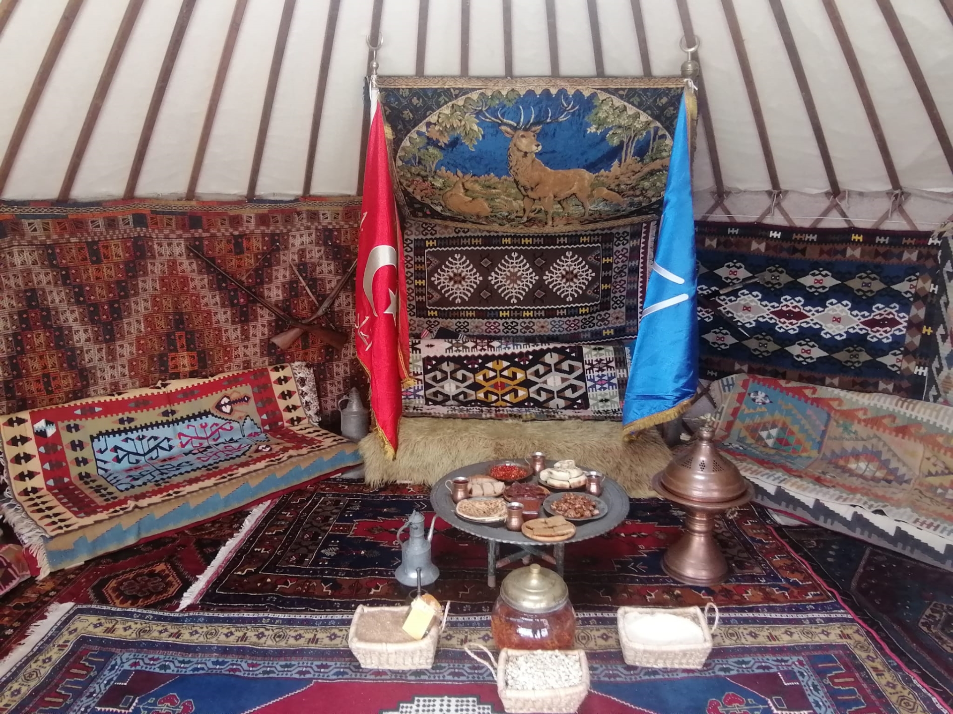 Keçeden yapılan Büyükşehir Belediyesi Çadırı içerisinde