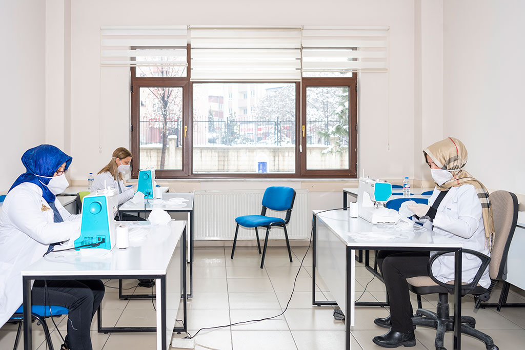 Kayseri Büyükşehir Belediyesi bünyesindeki KAYMEK A.Ş tarafından maske üretimi gerçekleştiriliyor. Üretimi yapılan maskeler Büyükşehir Belediyesi bünyesinde özellikle sahada çalışan ekipler tarafından kullanılıyor. Koronavirüs tedbirleri kapsamında kesintisiz çalışmalarını sürdüren ve ekipleri dönüşümlü olarak 24 saat sahada tutan Kayseri Büyükşehir Belediyesi, hem çalışanlarının hem de vatandaşların sağlığını düşünerek hareket ediyor. Büyükşehir Belediye Başkanı Dr. Memduh Büyükkılıç’ın talimatıyla KAYMEK bünyesinde maske üretimi gerçekleştirilerek, dezenfekte ekipleri başta olmak üzere sahada çalışan tüm birimlerin kullanımına sunuldu. Eğitime ara verilmesi nedeniyle KAYMEK bünyesindeki 10 öğretmenin maske yapımı alanına kaydırılmasıyla hem hijyen ve kişisel tedbire yönelik maske ihtiyacı karşılanmış oluyor hem de belediye bu yönde kendi imkânlarını kullanarak tasarruf sağlamış oluyor.