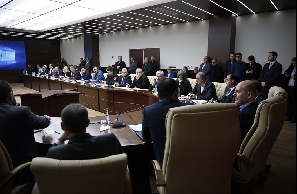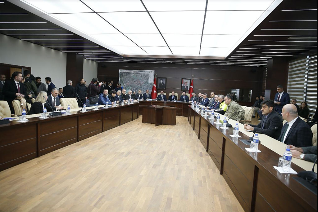 Kayseri Büyükşehir Belediye Başkanı Dr. Memduh Büyükkılıç, bürokratlarıyla birlikte deprem bölgesinde incelemelerde bulundu. Elazığ’da depremin vurduğu binaların bulunduğu bölgede incelemelerde bulunan Başkan Büyükkılıç, İçişleri Bakanı Süleyman Soylu, Hazine ve Maliye Bakanı Berat Albayrak ve Çevre Şehircilik Bakanı Murat Kurum ile de bir araya geldi. Kayseri Büyükşehir Belediye Başkanı Dr. Memduh Büyükkılıç, depremde yıkılan binaların durumu, deprem öncesi alınacak tedbirler ve deprem sonrası yapılacak hizmetlerle ilgili geniş kapsamlı incelemelerde bulunmak üzere deprem bölgesine gitti. Başkan Büyükkılıç’ın deprem bölgesindeki incelemelerine Büyükşehir Belediyesi Genel Sekreter Yardımcıları Hamdi Elcuman ve S.Bayar Özsoy, KASKİ Genel Müdürü Özgür Özdemir, İmar A.Ş. Yönetim Kurulu Başkanı Serdar Altuntuğ, Fen İşleri Daire Başkanı Ali Hasdal ve Kentsel Dönüşüm Daire Başkanı Hakkı Alp de katıldı. 6,8 büyüklüğündeki depremin merkez üssü olan Elazığ’daki incelemeleri öncesi depremden etkilenen Malatya’nın Darende ilçesini ziyaret eden Başkan Memduh Büyükkılıç, İlçe Belediye Başkanı İsa Özkan ile bir süre görüştü. Büyükşehir Belediye Başkanı Dr. Memduh Büyükkılıç, beraberindeki bürokratlarıyla Darende’den Elazığ’a geçti ve ilk olarak Elazığ Valiliği’ni ziyaret etti. ÜÇ BAKAN İLE TOPLANTIYA KATILDI Büyükşehir Belediye Başkanı Memduh Büyükkılıç, Elazığ Valiliği’nde İçişleri Bakanı Süleyman Soylu, Hazine ve Maliye Bakanı Berat Albayrak, Çevre Şehircilik Bakanı Murat Kurum, Elazığ Valisi Çetin Oktay Kaldırım ve bürokratların iştirakiyle yapılan toplantıya katıldı. İçişleri Bakanı Süleyman Soylu başkanlığında gerçekleştirilen toplantıda deprem sonrası yapılan çalışmalar, hasarlı binaların durumu ve depremzedelere verilen hizmetler kapsamlı olarak ele alındı. Başkan Memduh Büyükkılıç, toplantı öncesi ve sonrasında üç Bakan ile de görüşme fırsatı buldu. ELAZIĞ’DA SAHA İNCELEMESİ Büyükşehir Belediye Başkanı Memduh Büyükkılıç, Bakanların katılımıyla gerçekleşen toplantıdan sonra bürokratlarıyla birlikte saha incelemesi yaptı. Başkan Memduh Büyükkılıç ve beraberindekiler depremde yıkılan binaların bulundukları bölgelere teknik gezi yaparak arazinin zemin yapısı, binaların durumu gibi konularda incelemelerde bulundular.