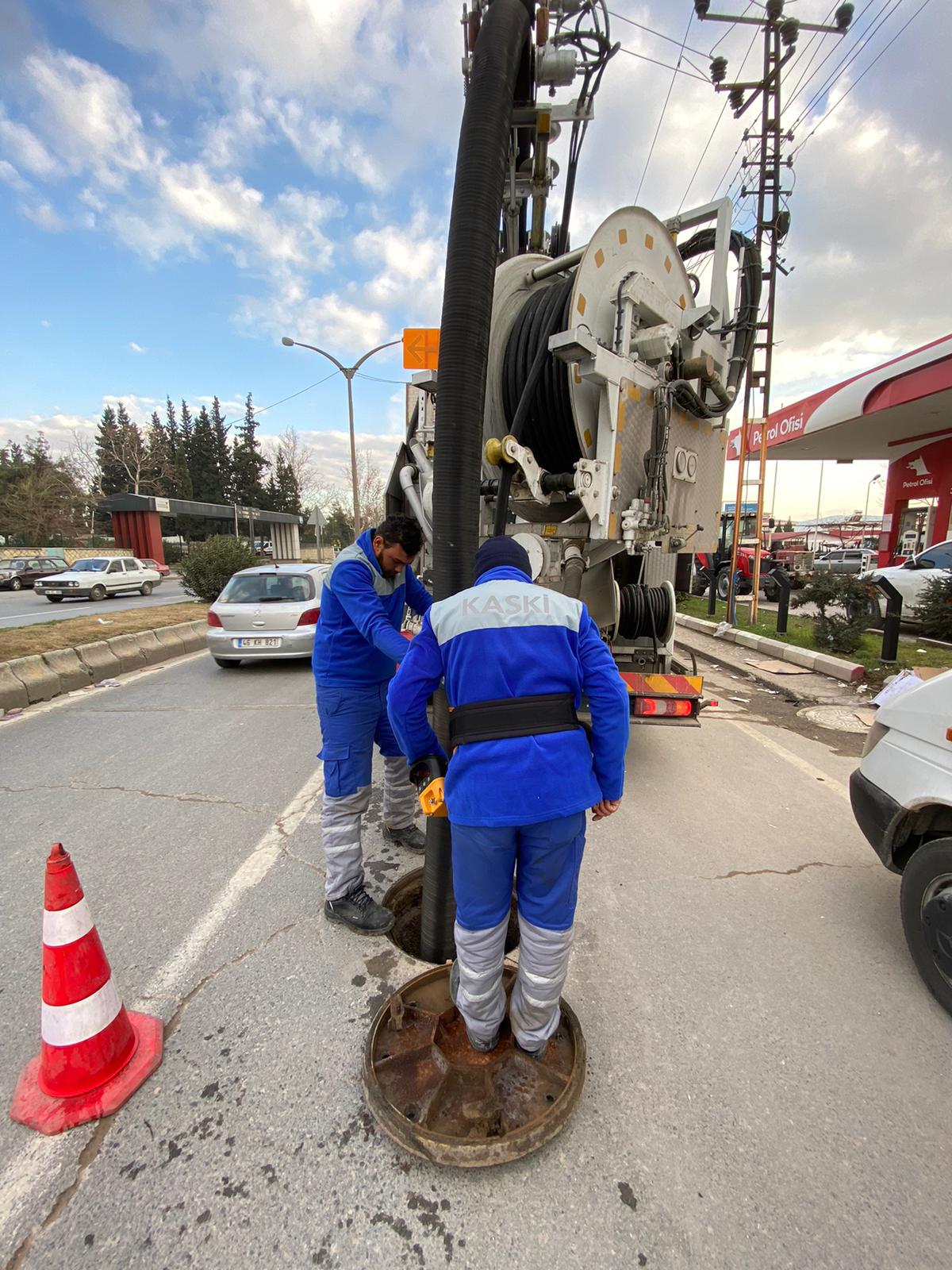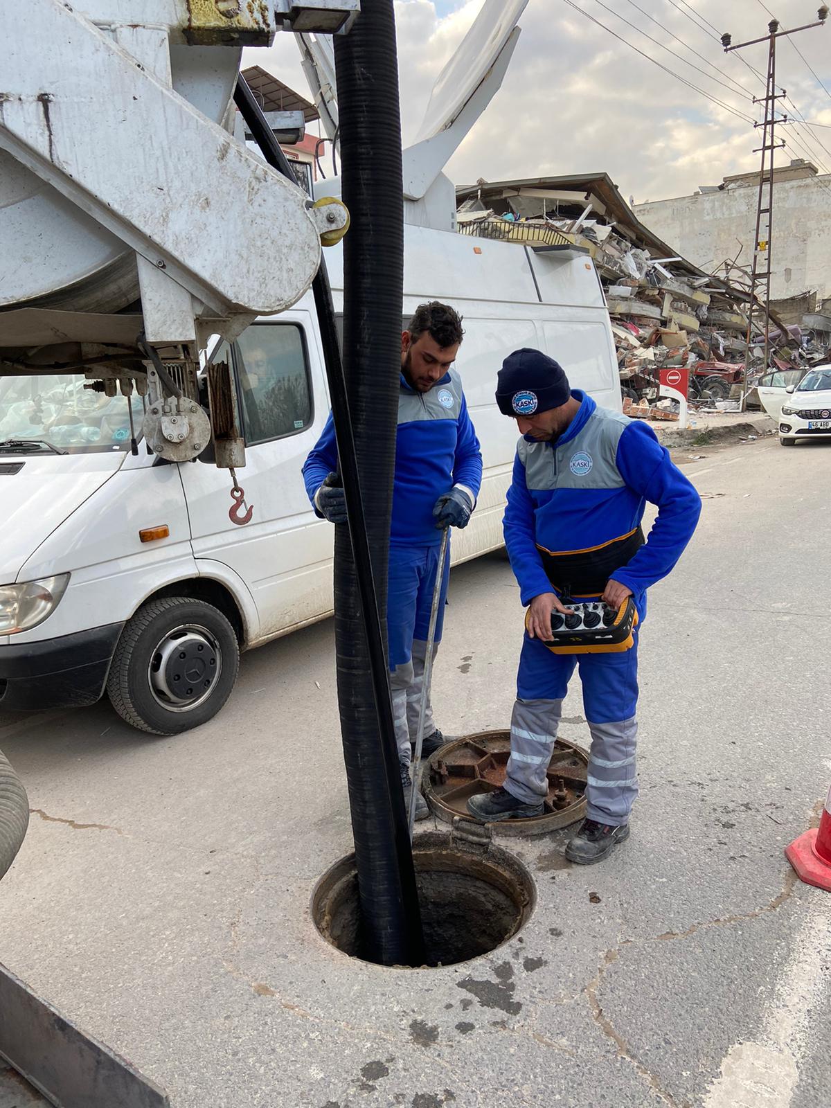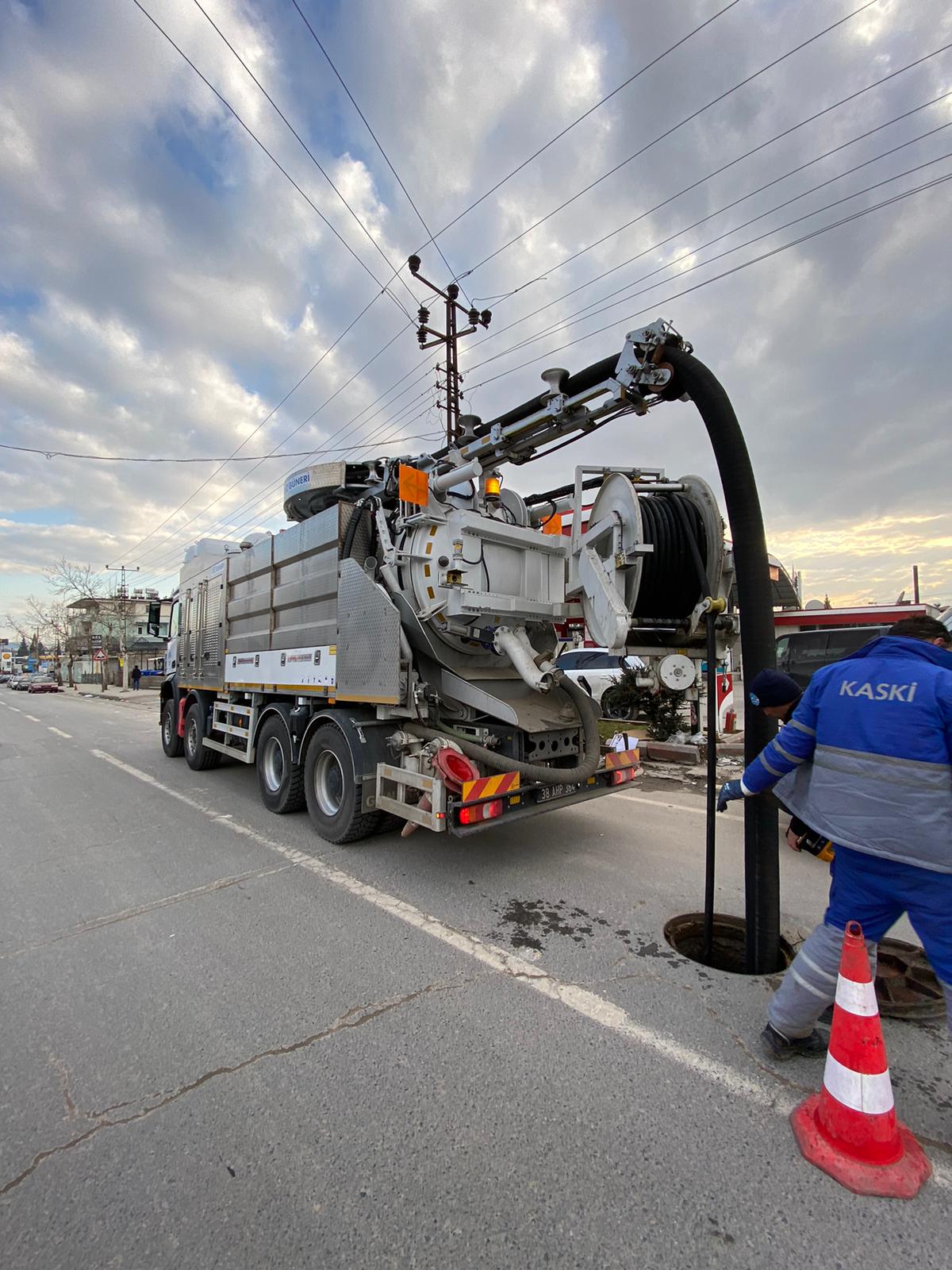 Bölgede depremzedelerin konaklama imkânı bulduğu binaların ve yoğun şekilde hizmet veren hastanelerin kanalizasyon hattındaki tıkanıklıkları açan KASKİ ekipleri, altyapıyı acil ihtiyaca cevap verecek şekilde faaliyete geçiriyor.