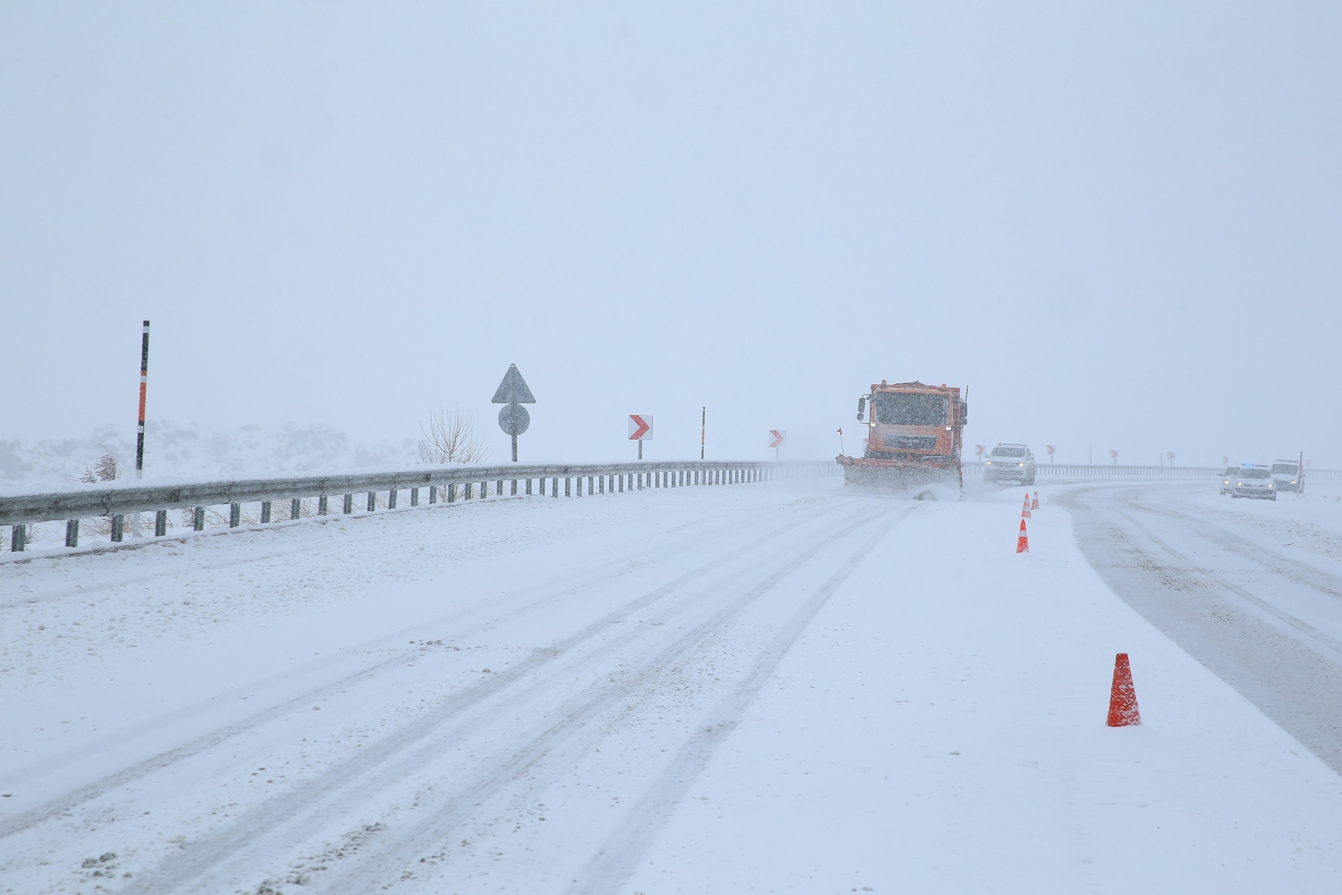 de süren yoğun yol açma çalışmaları ile yolun kar nedeniyle kapanmasını
