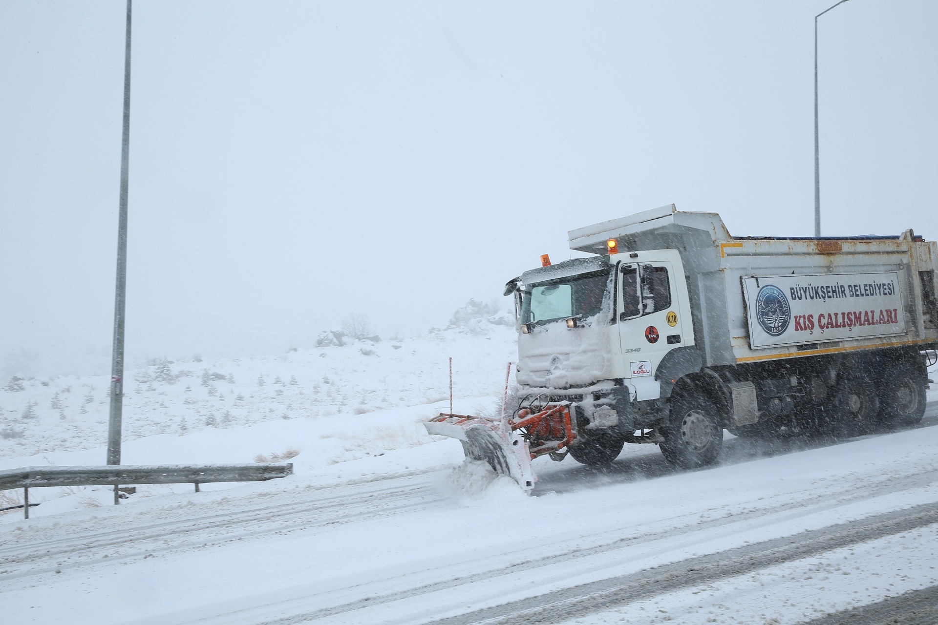 Kayseri’nin, yüksek kesimlerinde etkili olan kar yağışına da anında müdahale