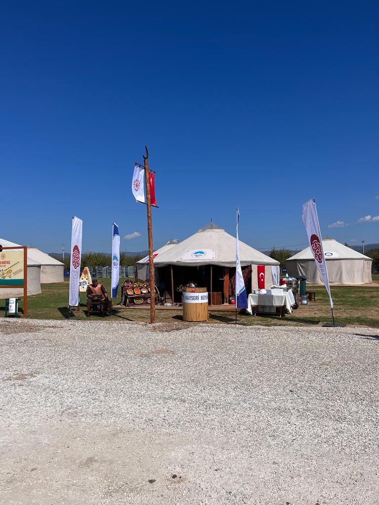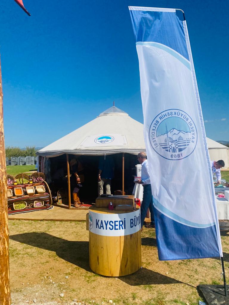 sunan çadır standı ile Kayseri Büyükşehir Belediyesi, şehir içinde olduğu kadar