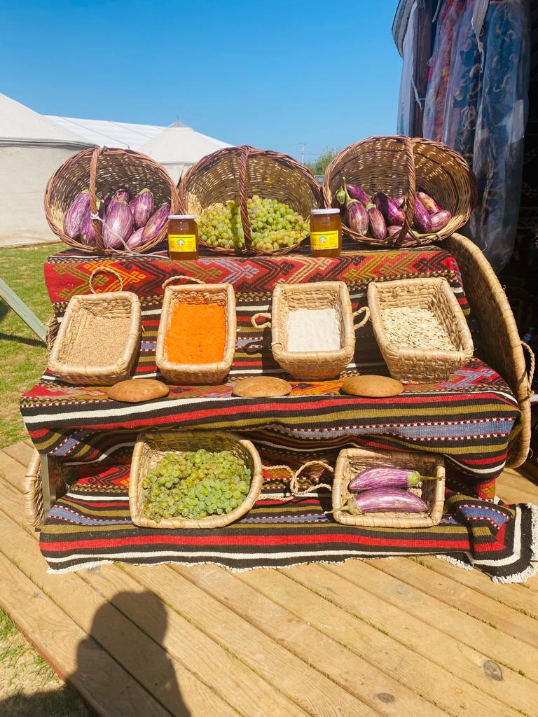 içerisinde gilaboru, pastırma, tandır börekleri, yamula patlıcanı, üzüm,