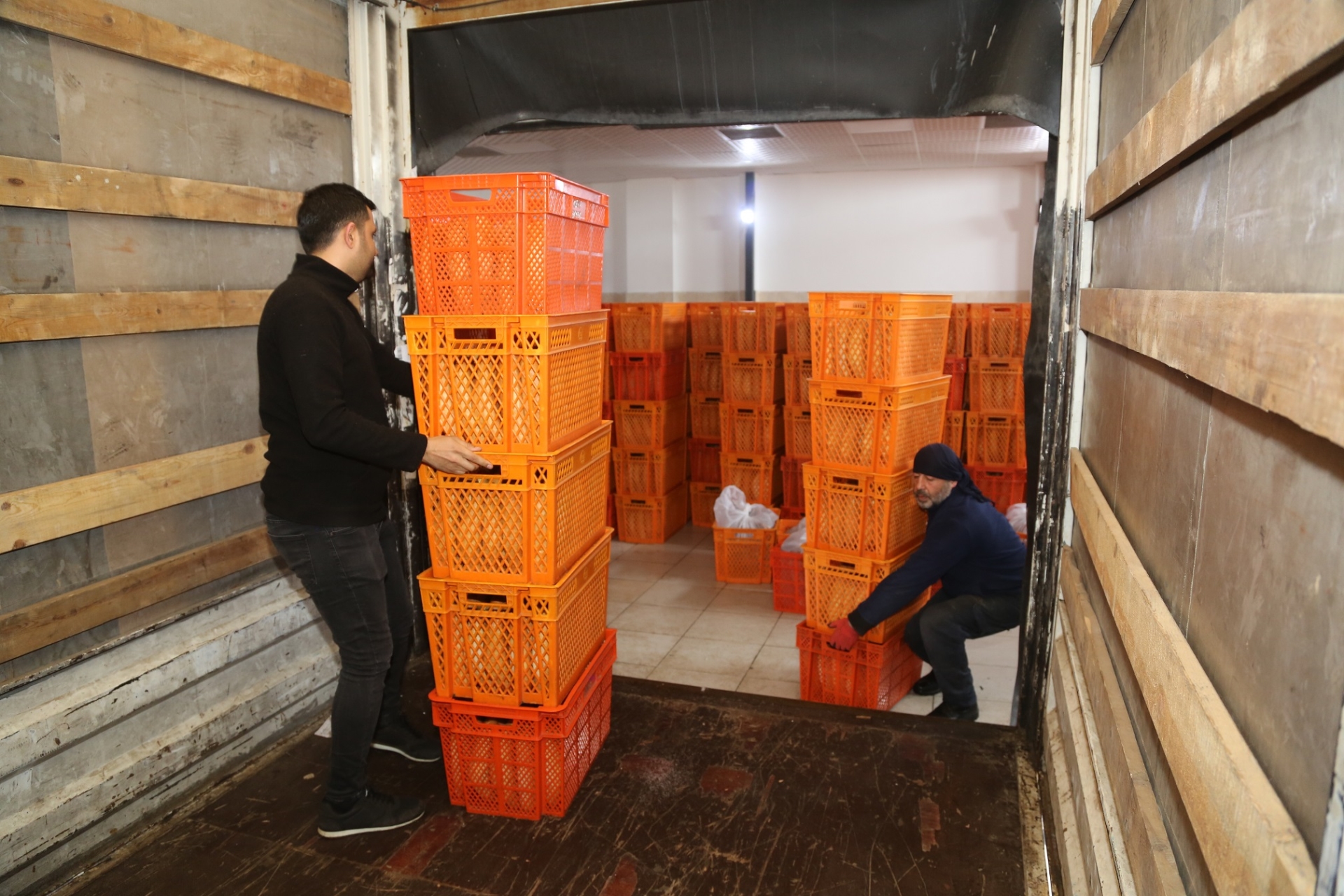 malzemelerle dolu yardım tırları ve kamyonlar koordineli bir şekilde