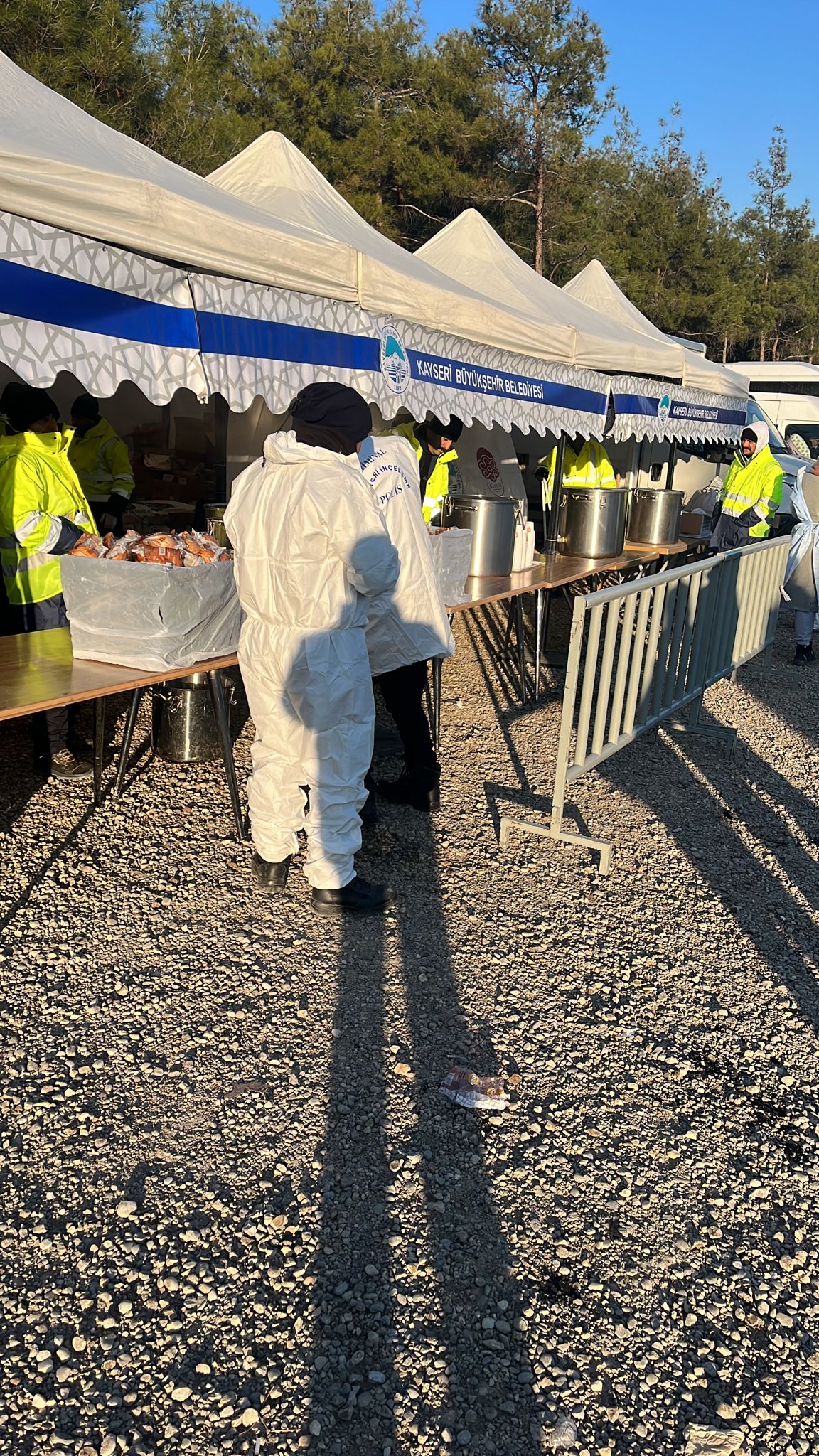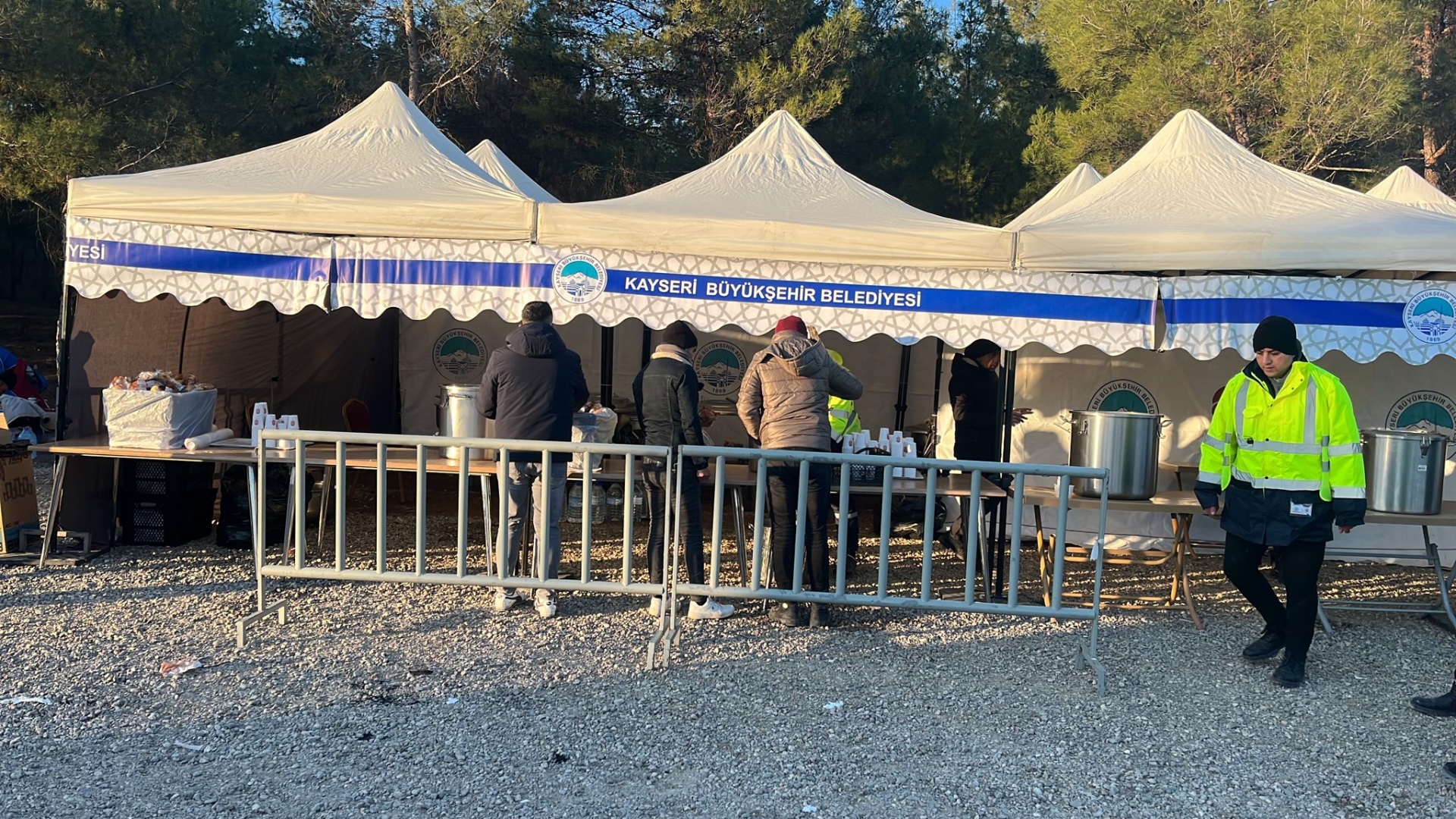 Bu kapsamda bölgede devletin şefkat elini tüm imkânlarıyla gösteren Büyükşehir Belediyesi’nin bölgeye gönderdiği mobil mutfak ve aşçılar sürekli olarak sıcak yemek pişirip depremzedelere dağıtırken Büyükşehir bünyesinde faaliyet gösteren KAYTUR ekipleri Kahramanmaraş’ta ihtiyaç duyulan vatandaşların yoğun olduğu bölgelerde sıcak çorba ve yemek dağıtım noktası kurdu.