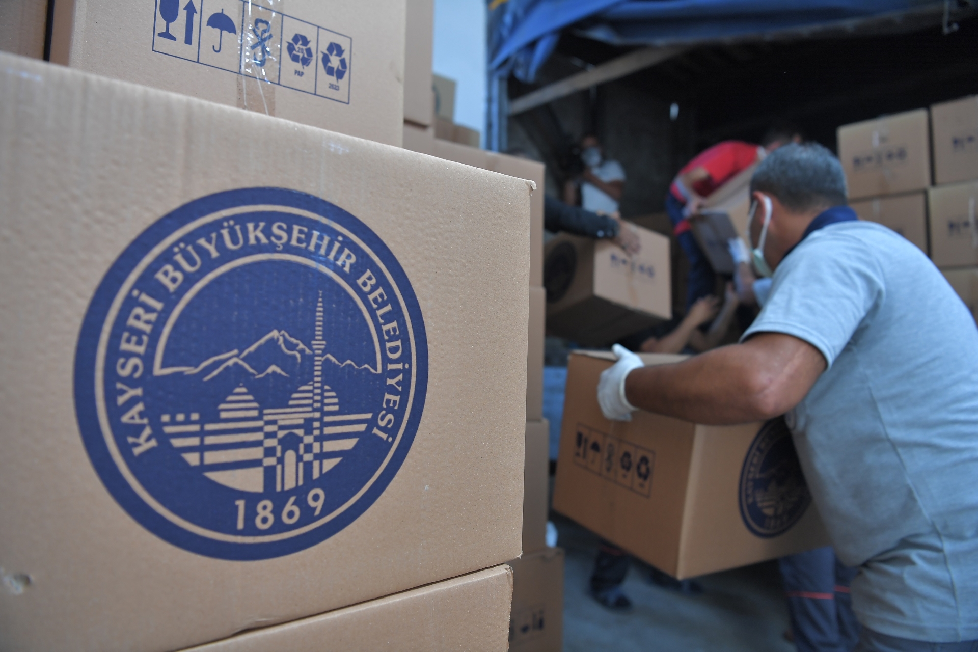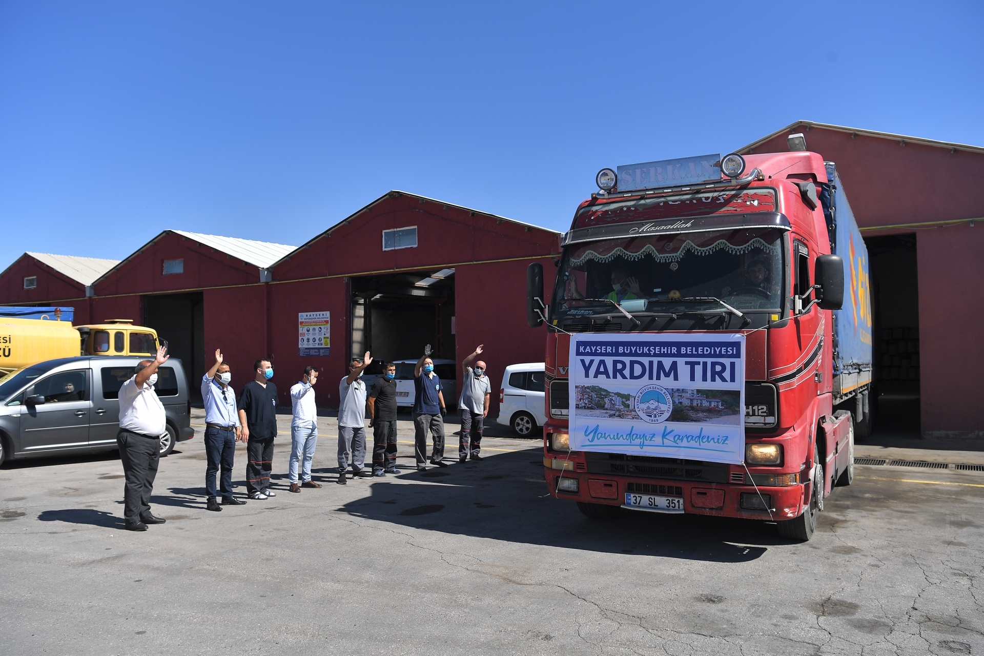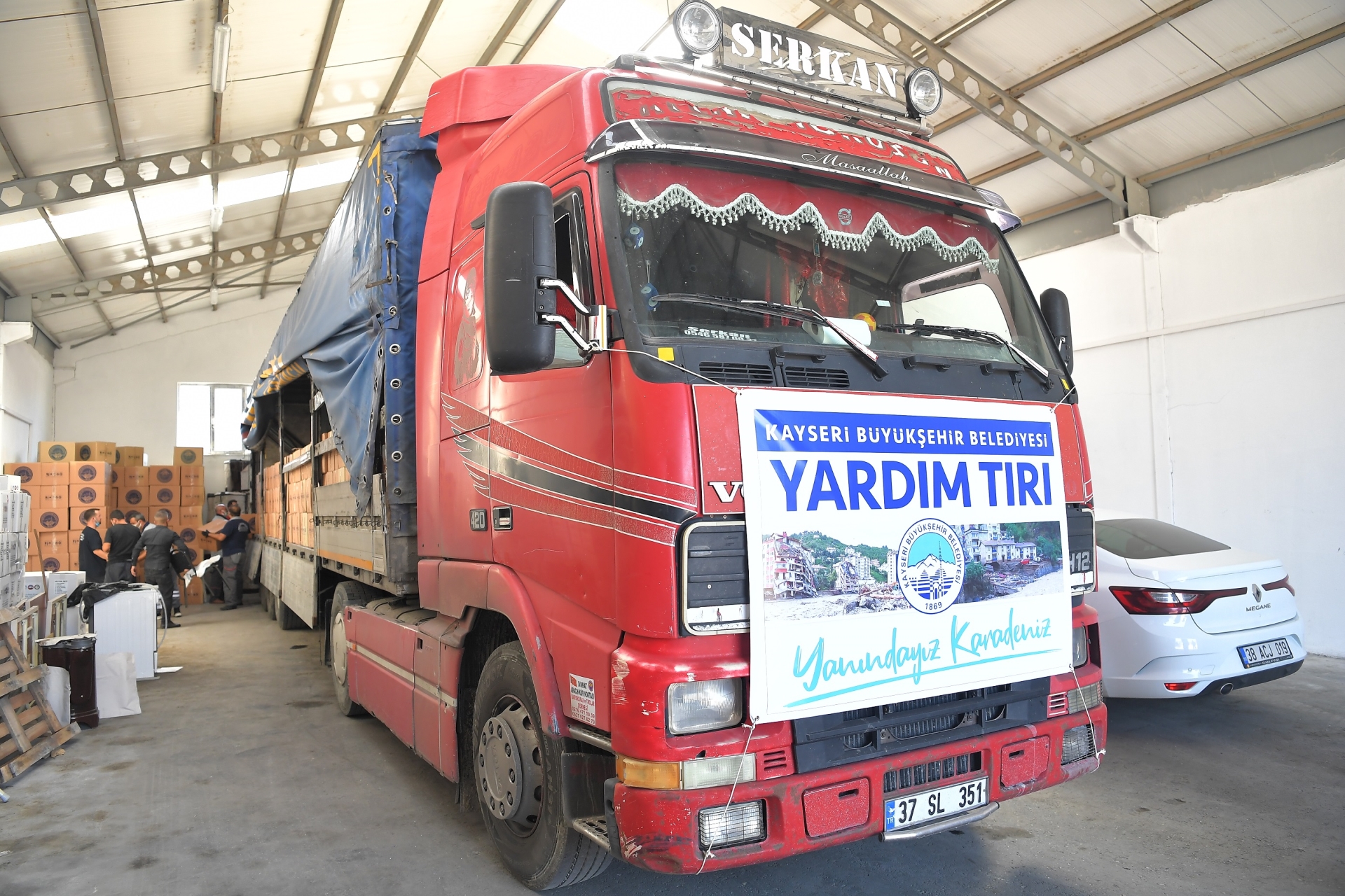 Kayseri Büyükşehir’in tırı, ‘Yanındayız Karadeniz’