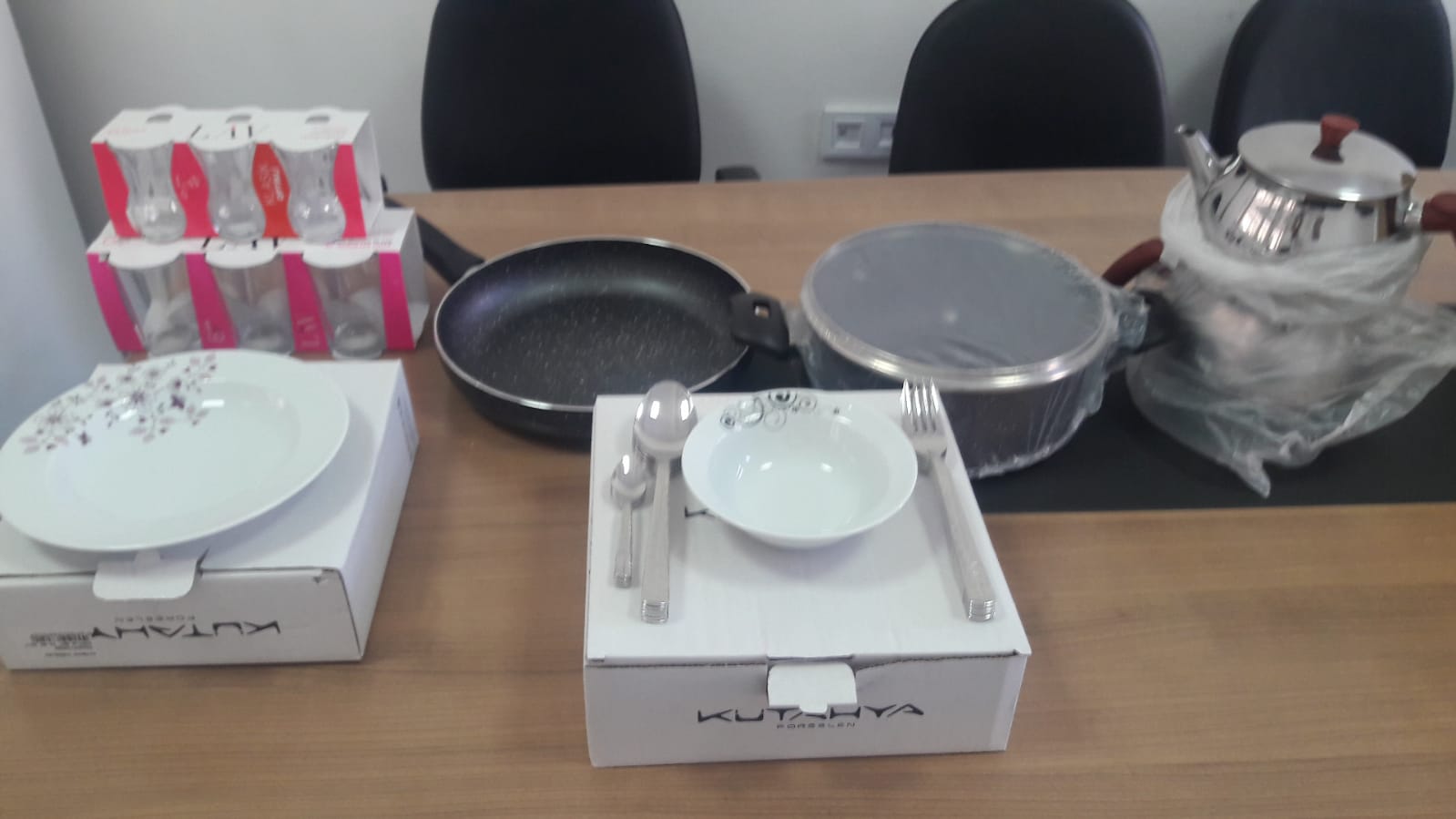 çay kaşığı, 6 adet çay bardağı ve 6 adet su bardağı olmak üzere 525 koli mutfak
