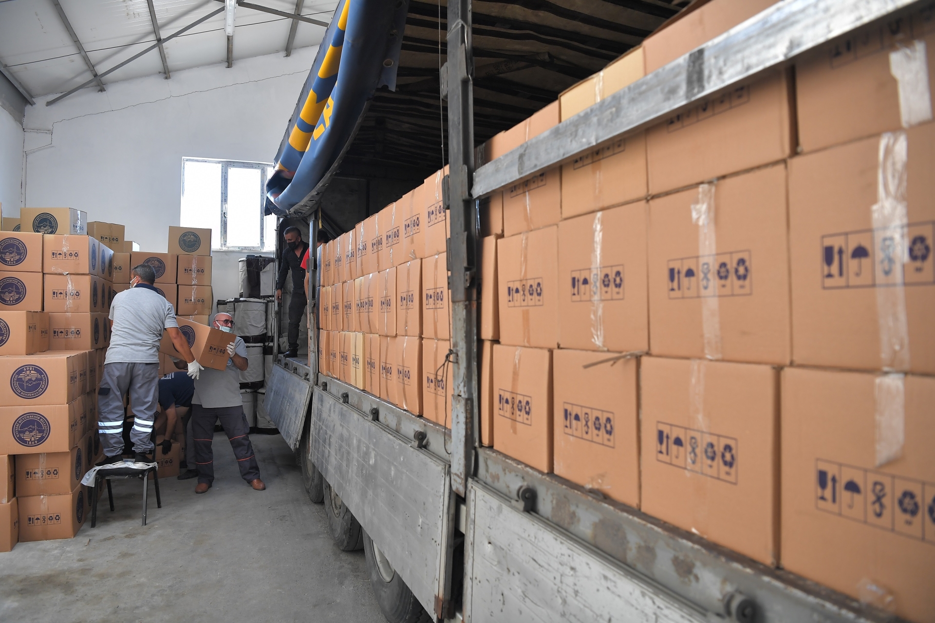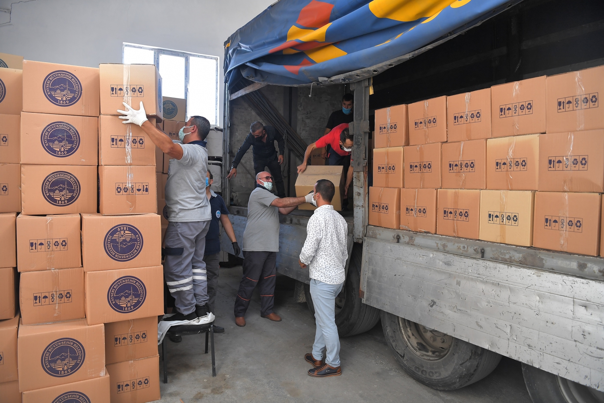 Tıra yüklenen malzemeler ile bölge halkının mutfak araç