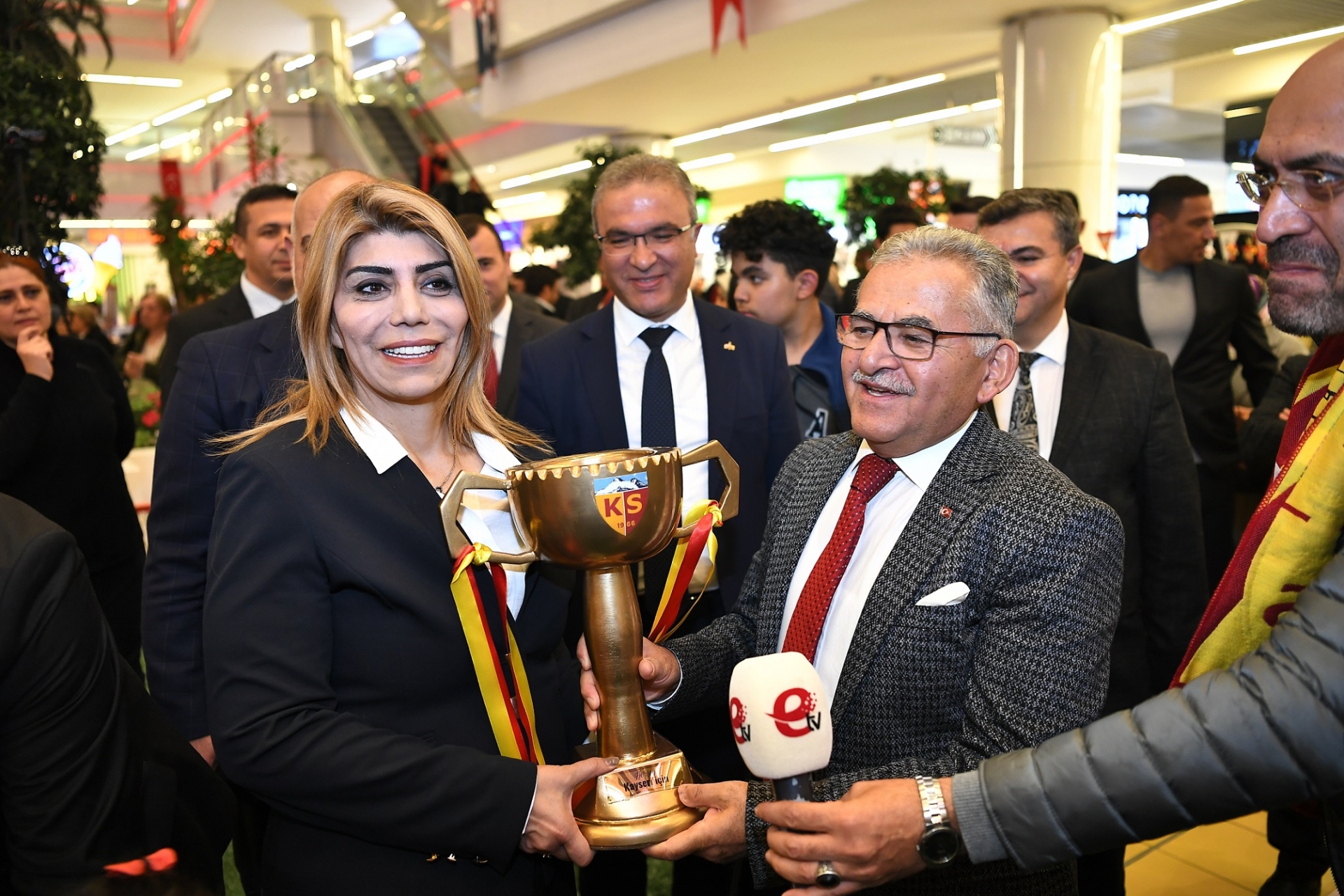Kayserispor Başkanı Berna Gözbaşı simgesel kupa kaldırdı.