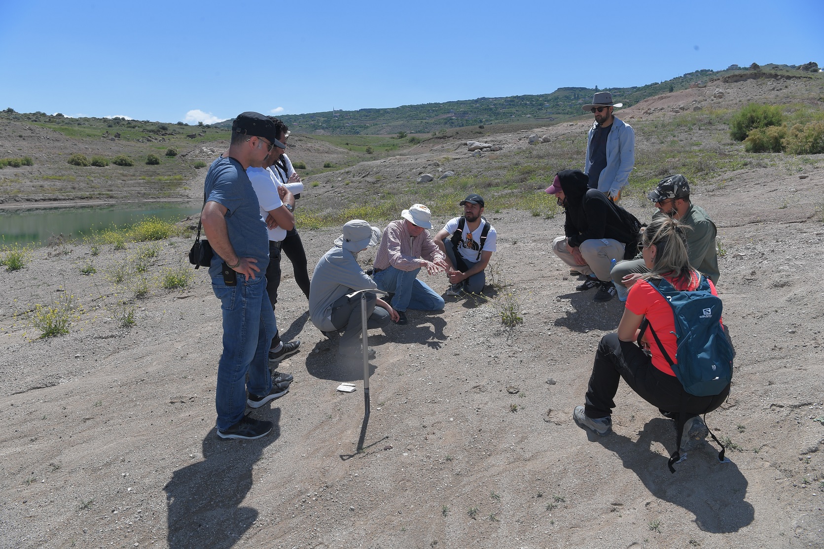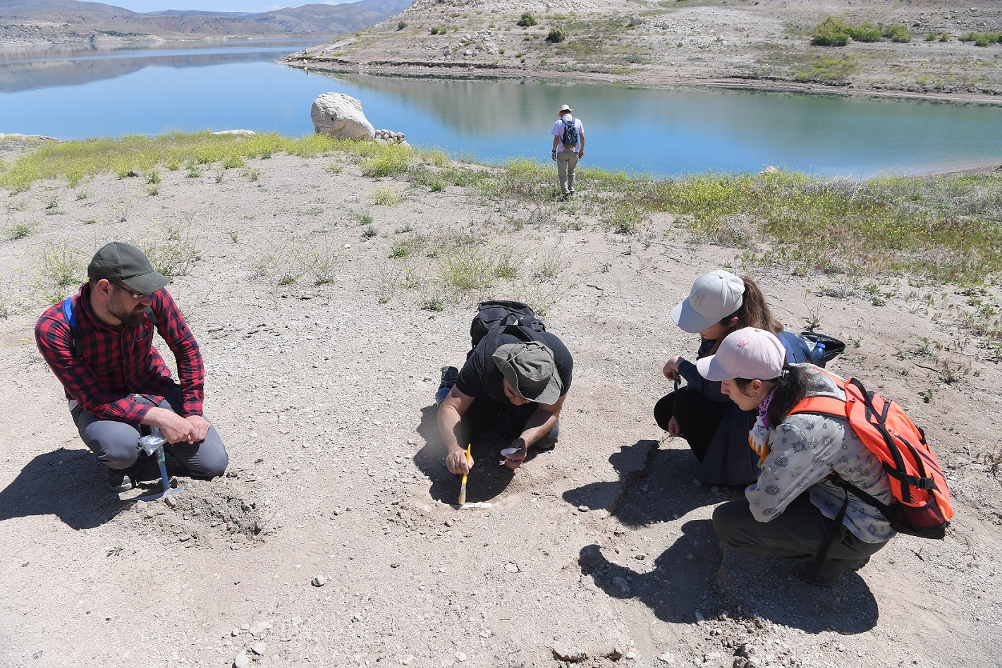 beraberindeki bilim insanları ile Kayseri’de bulunan fosil kazı çalışmalarını